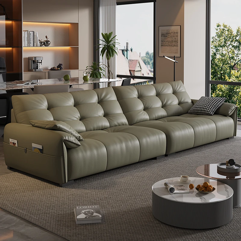 イタリアンミニマリズム本革ソファー - 高級ヴィラや豪邸にぴったりな2023年新作ストレートソファー。洗練されたデザインで、リビングをスタイリッシュに演出します!
