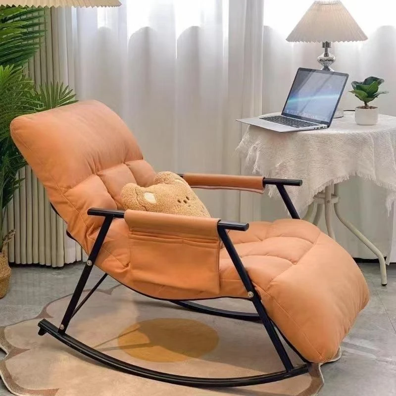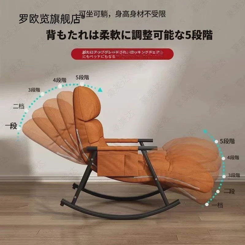 北欧スタイルのリクライニングチェア - おしゃれなバルコニーにぴったりのゆったりとしたロッキングチェア!大人もくつろげる個人用ソファ、リラックスしたひとときをお楽しみください。