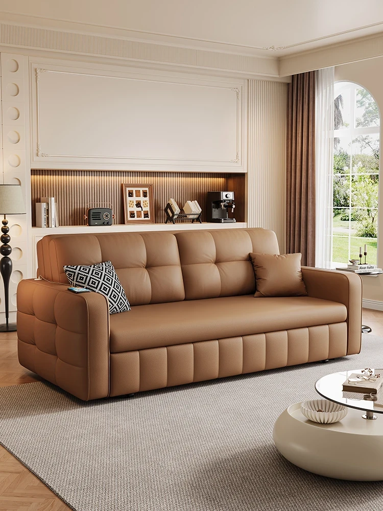 クリーミーなナパレザー製ソファベッド - 多機能折りたたみ・伸縮式、小型スペースにも最適なバルコニーや書斎にぴったりのソファ!快適さとスタイルを両立させた高品質なアイテムです。