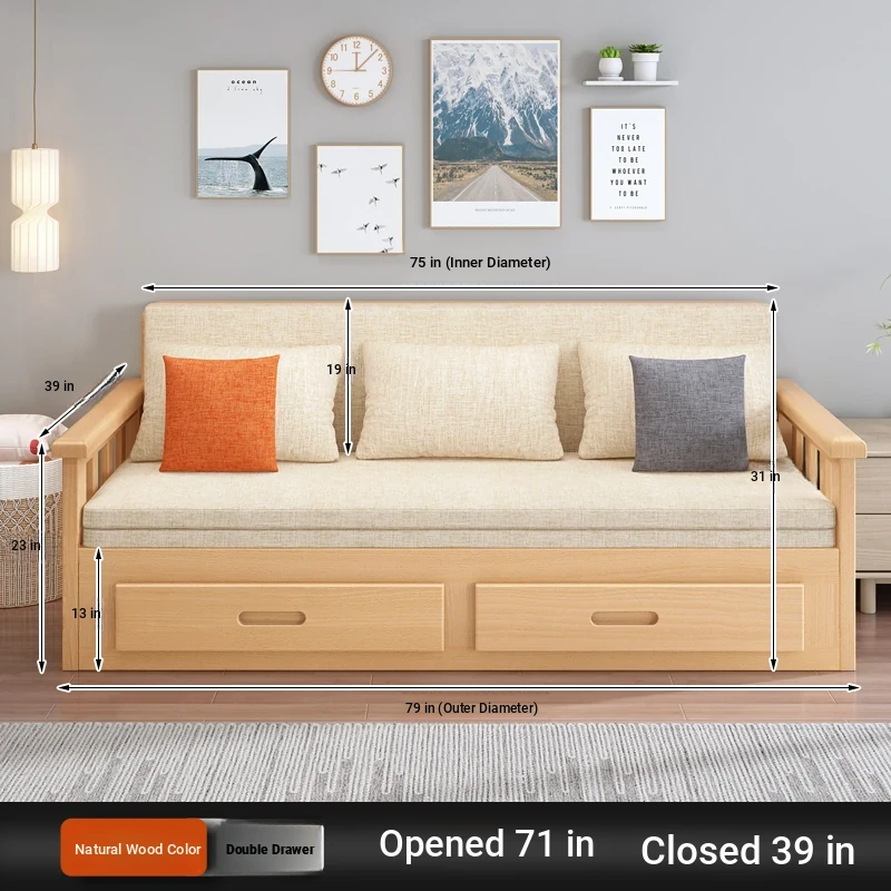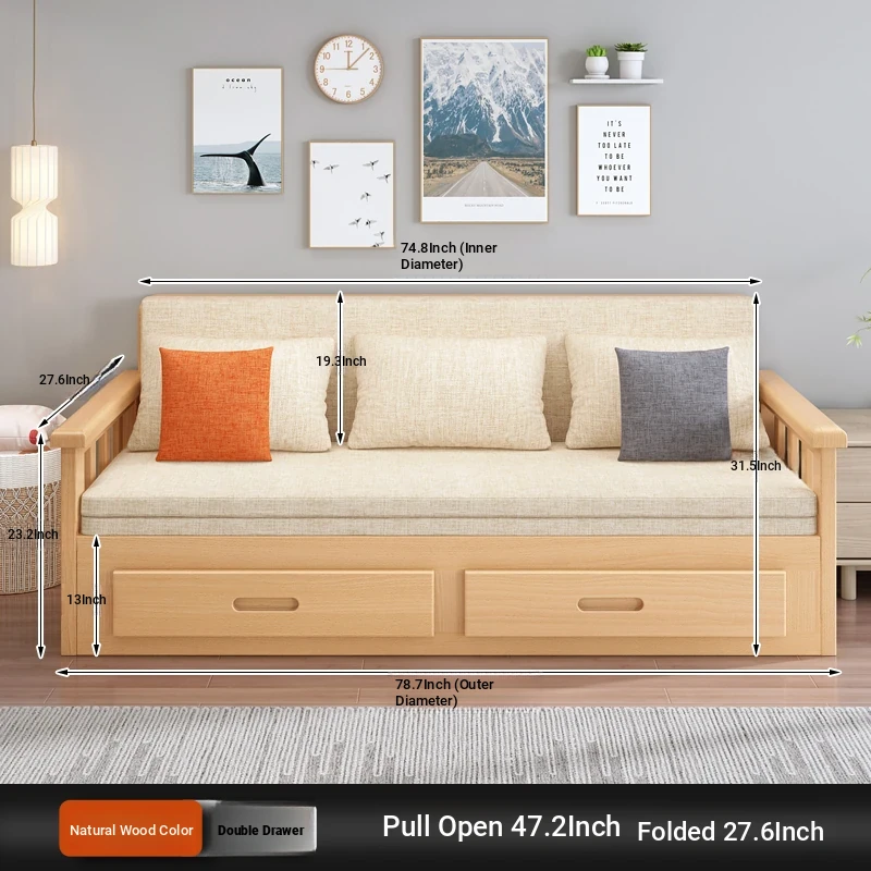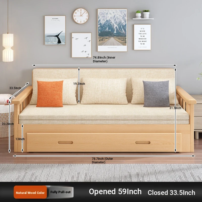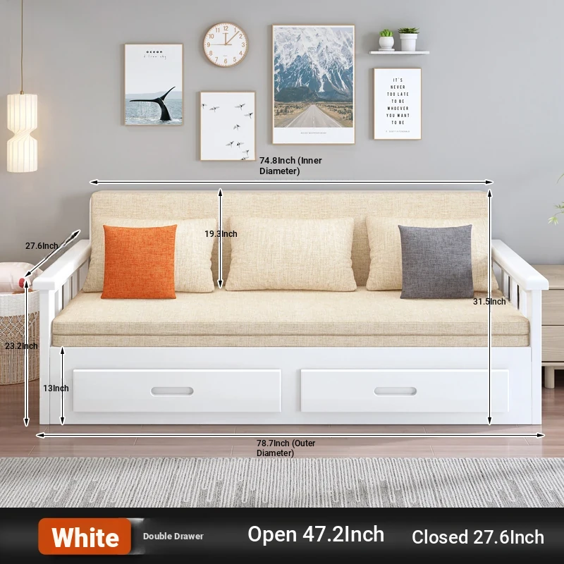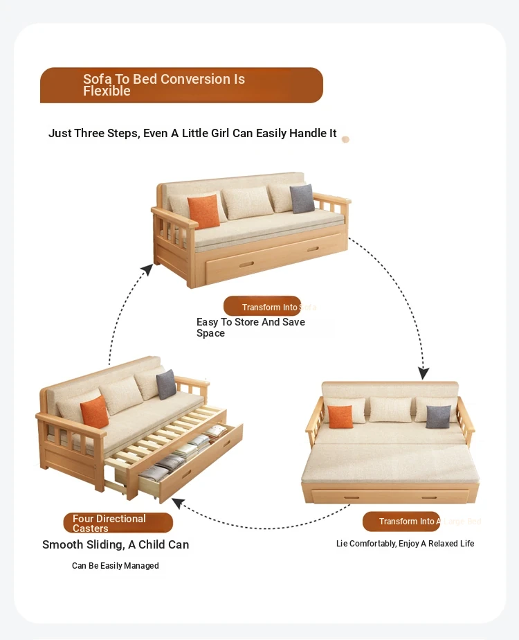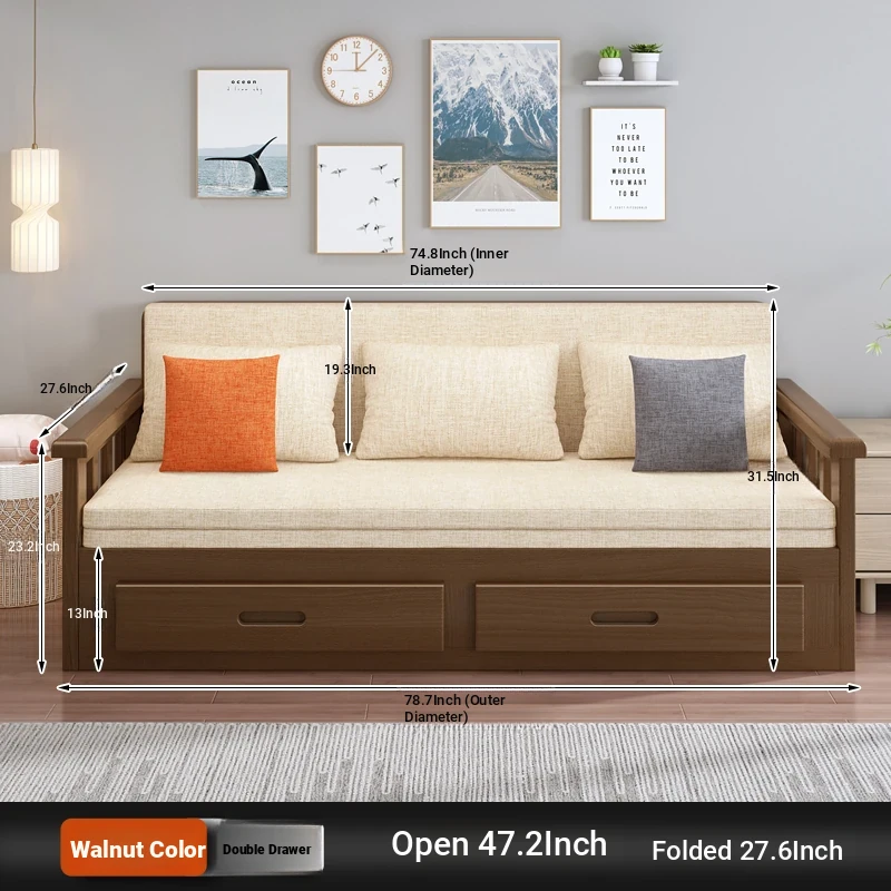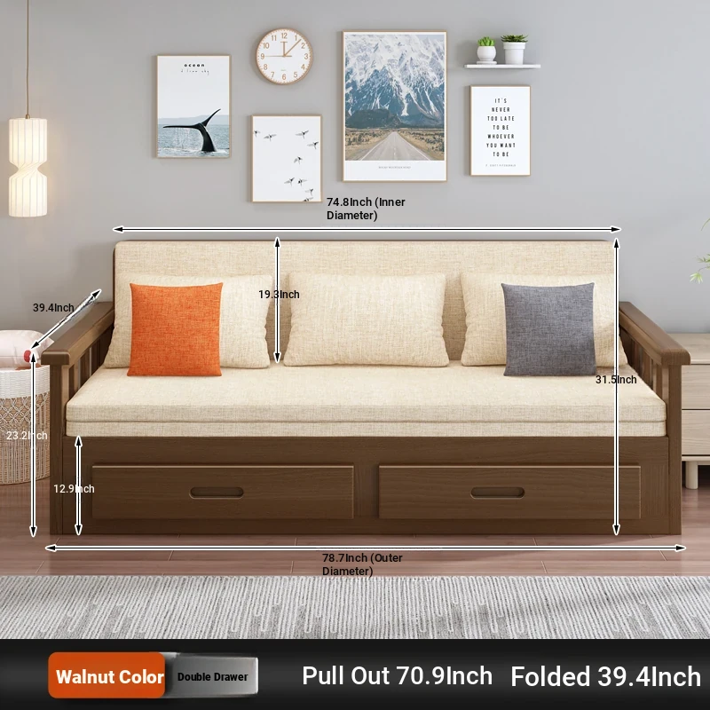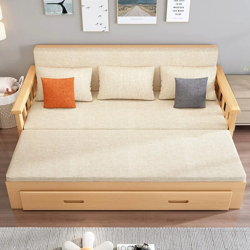 【Free Shipping from Hong Kong】Foldable Solid Wood Sofa Bed - Multifunctional Space-Saving Sleeper for Small Living Rooms, Perfect for Dual Use