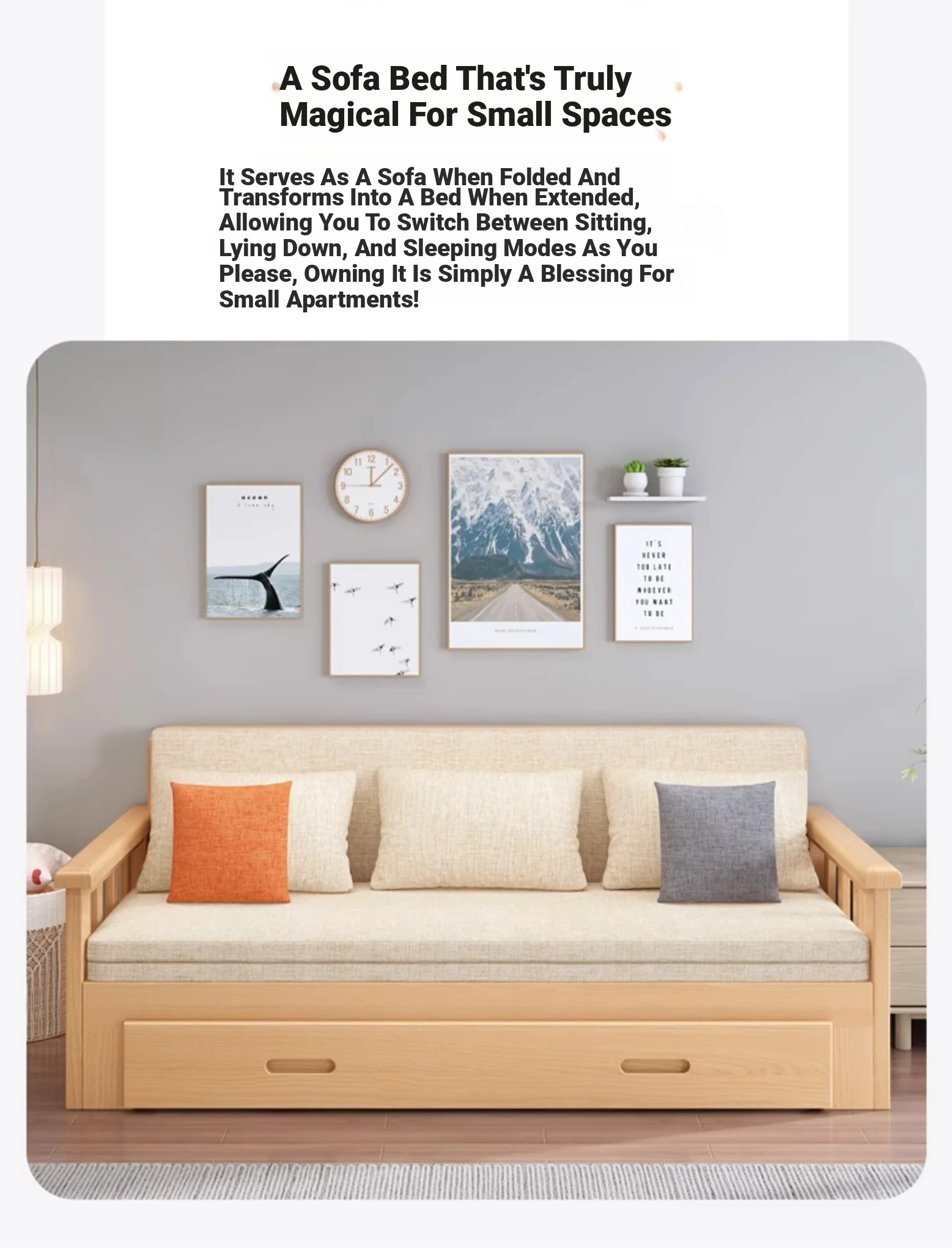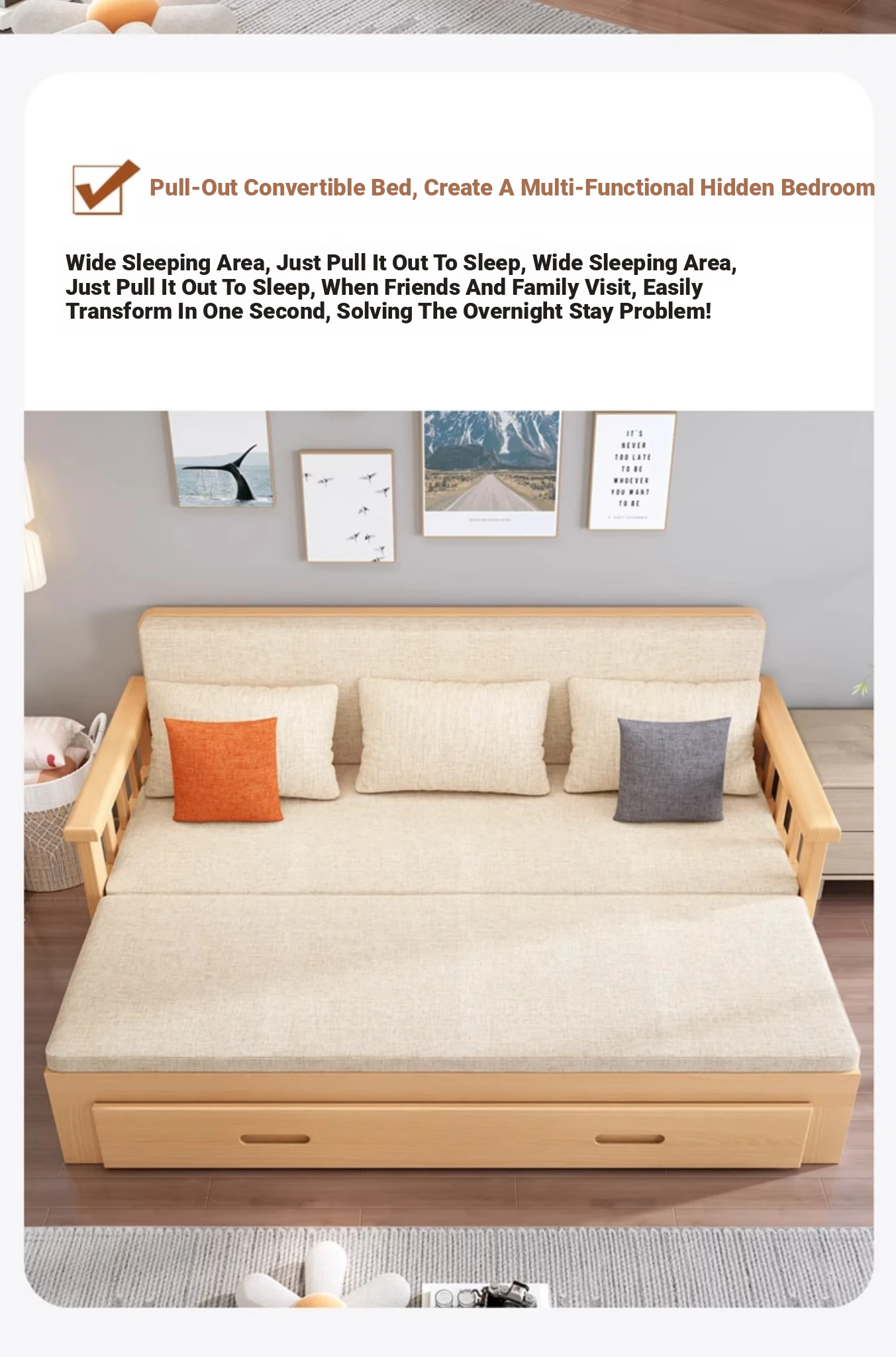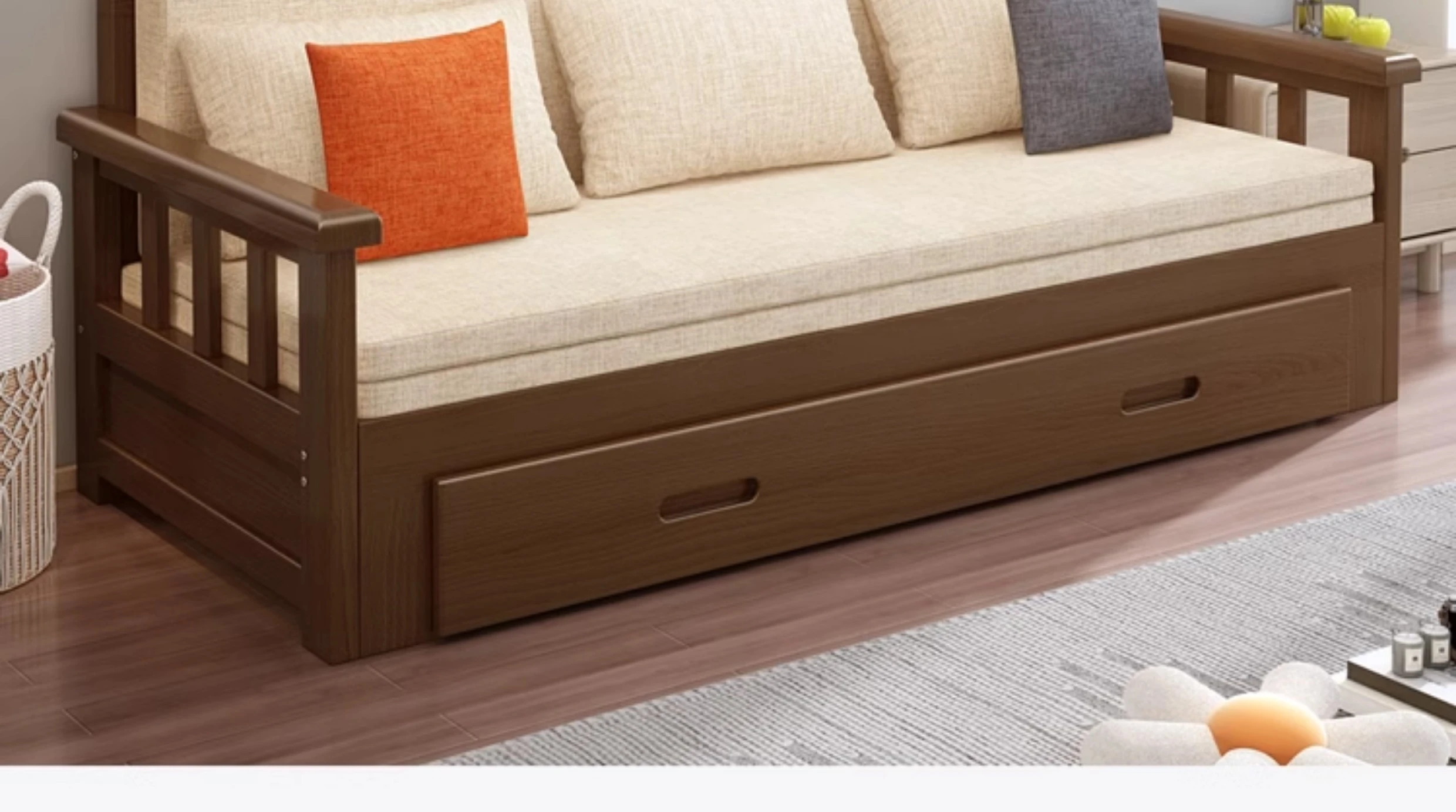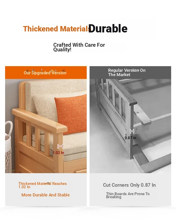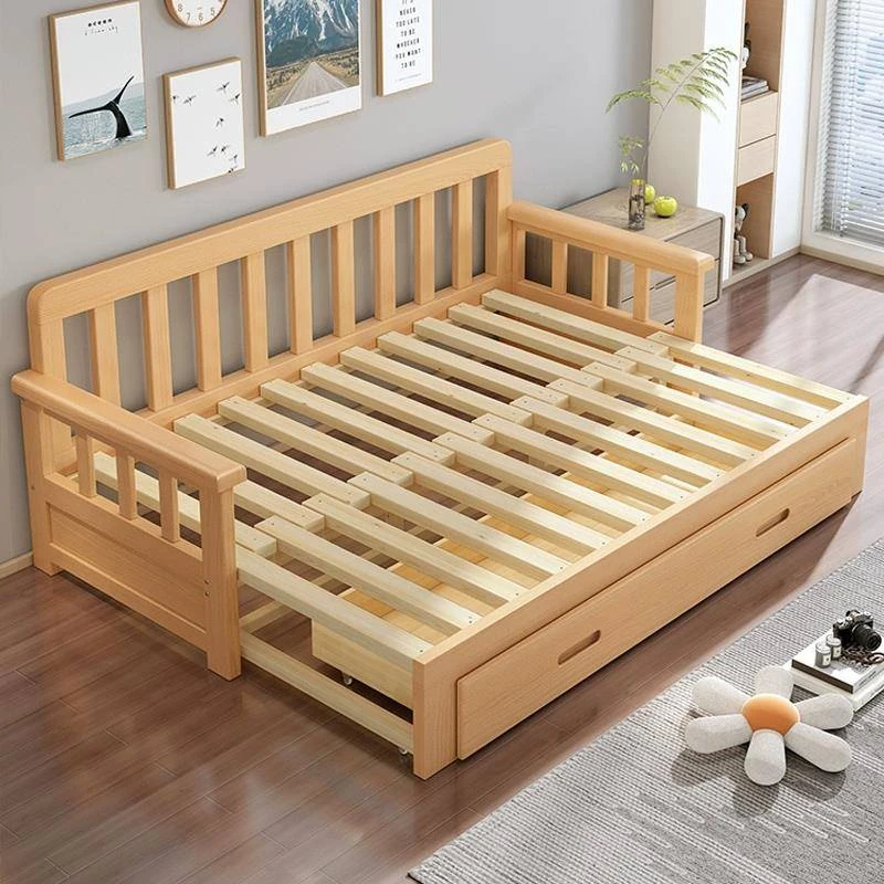 【Free Shipping from Hong Kong】Foldable Solid Wood Sofa Bed - Multifunctional Space-Saving Sleeper for Small Living Rooms, Perfect for Dual Use