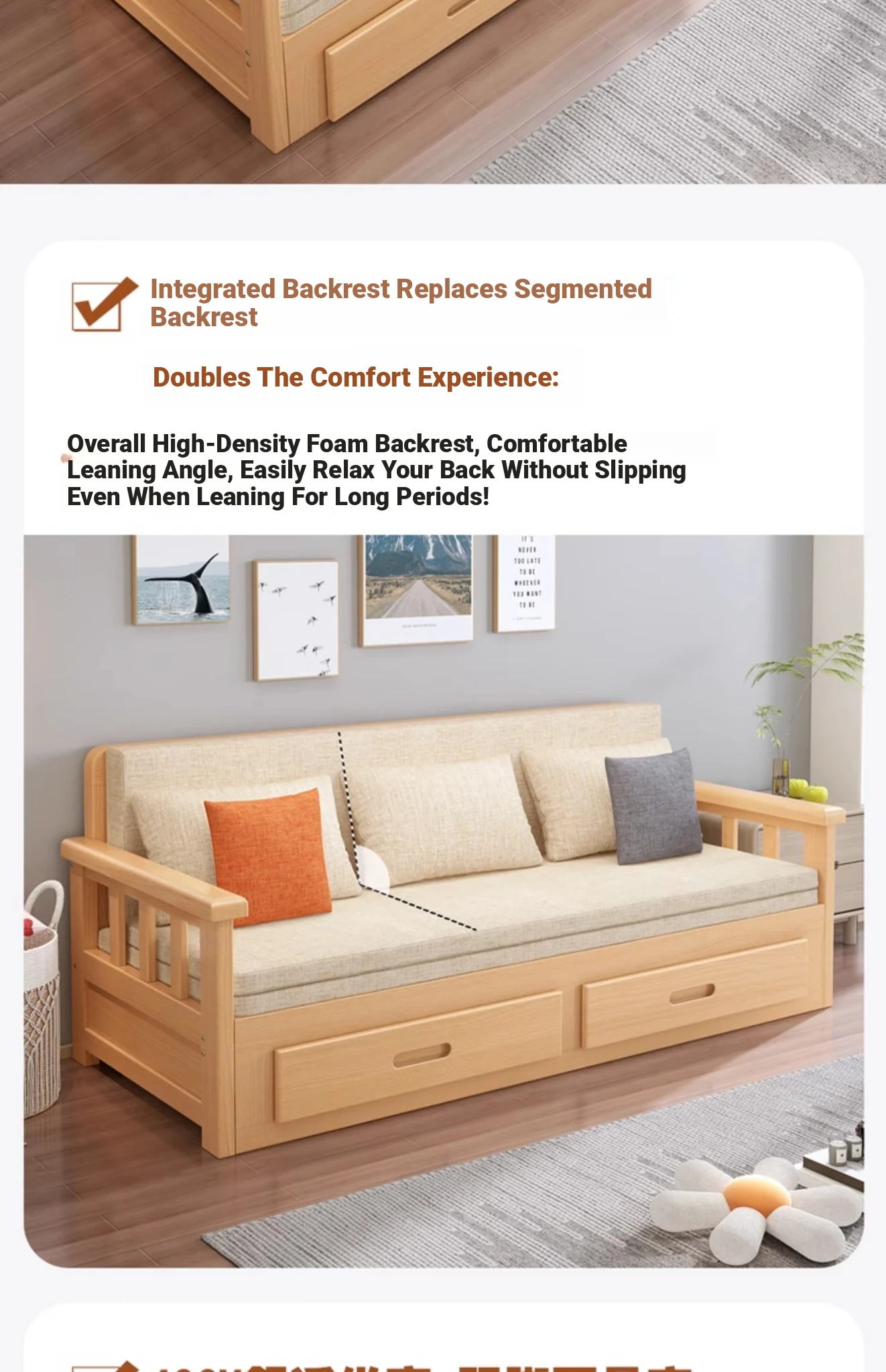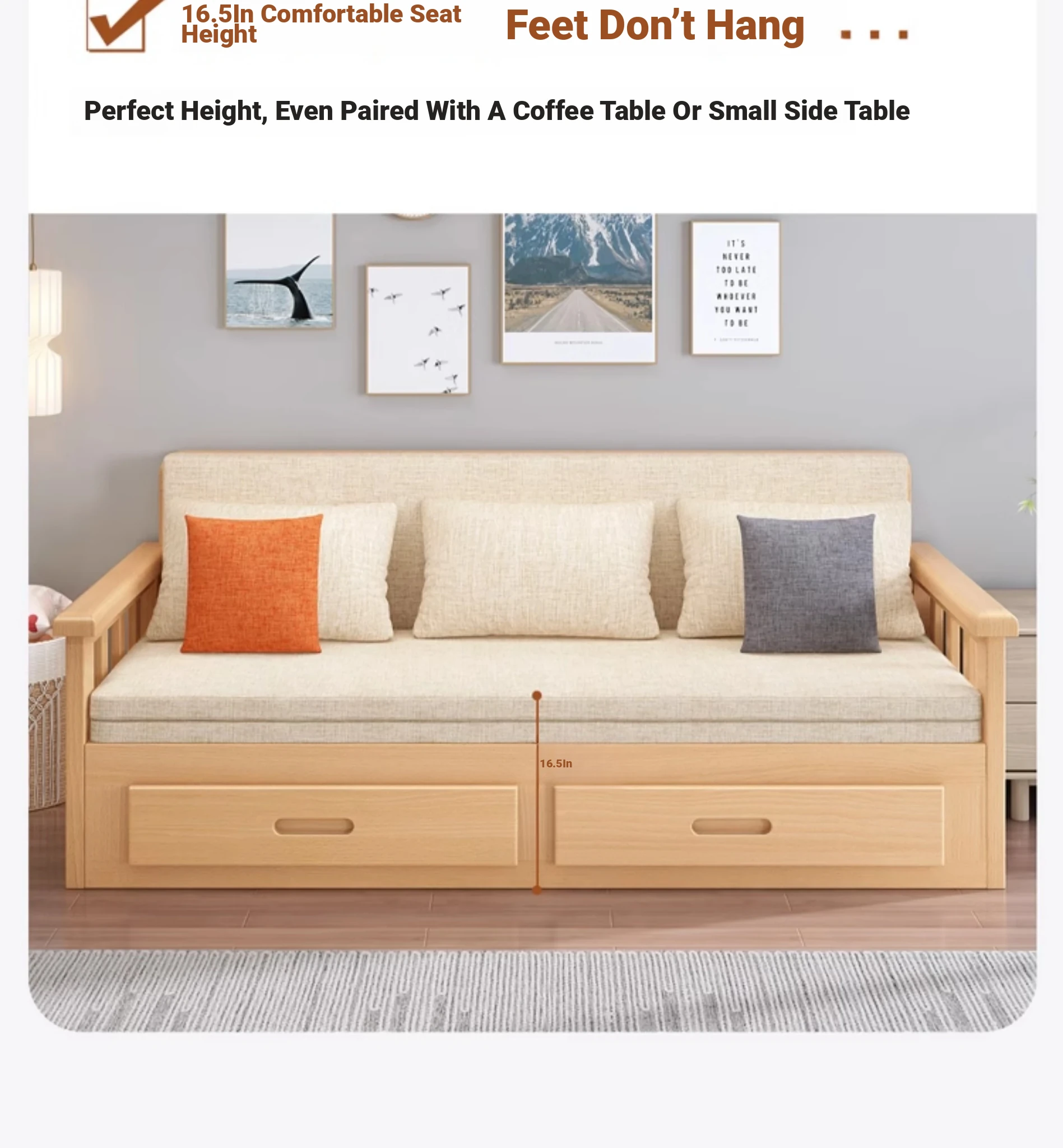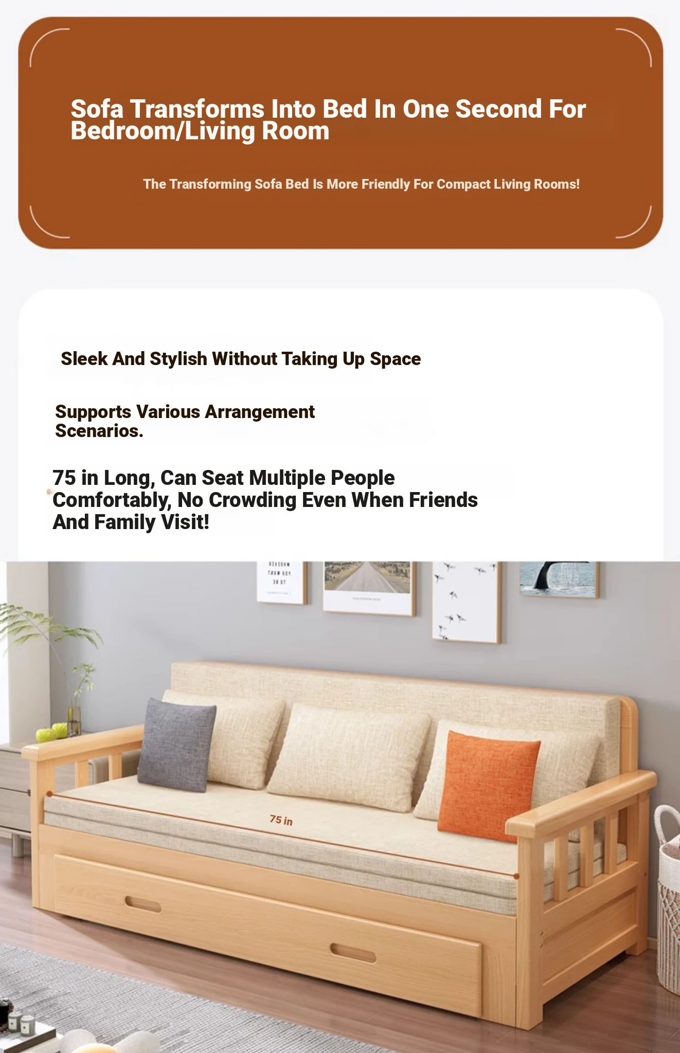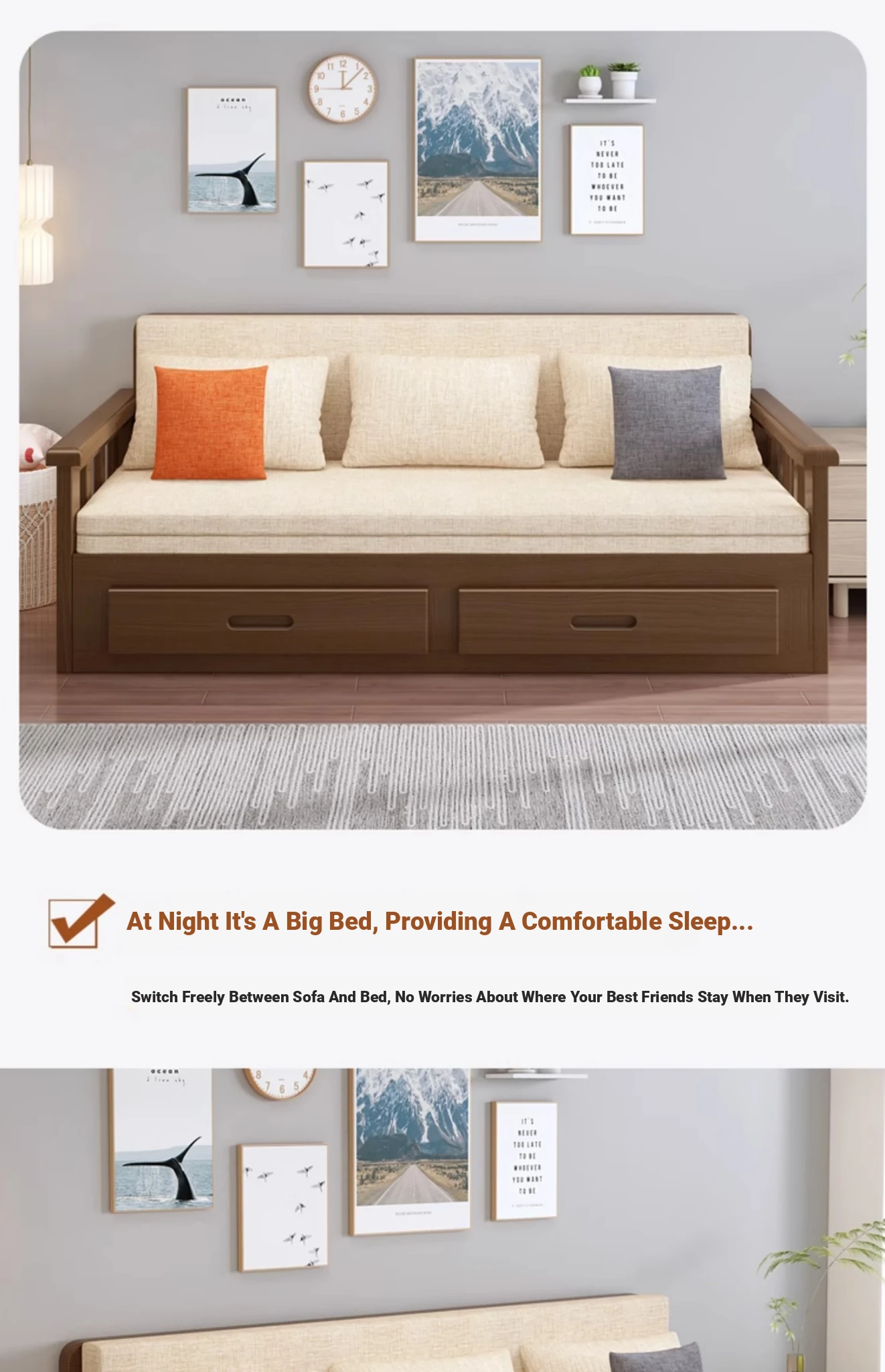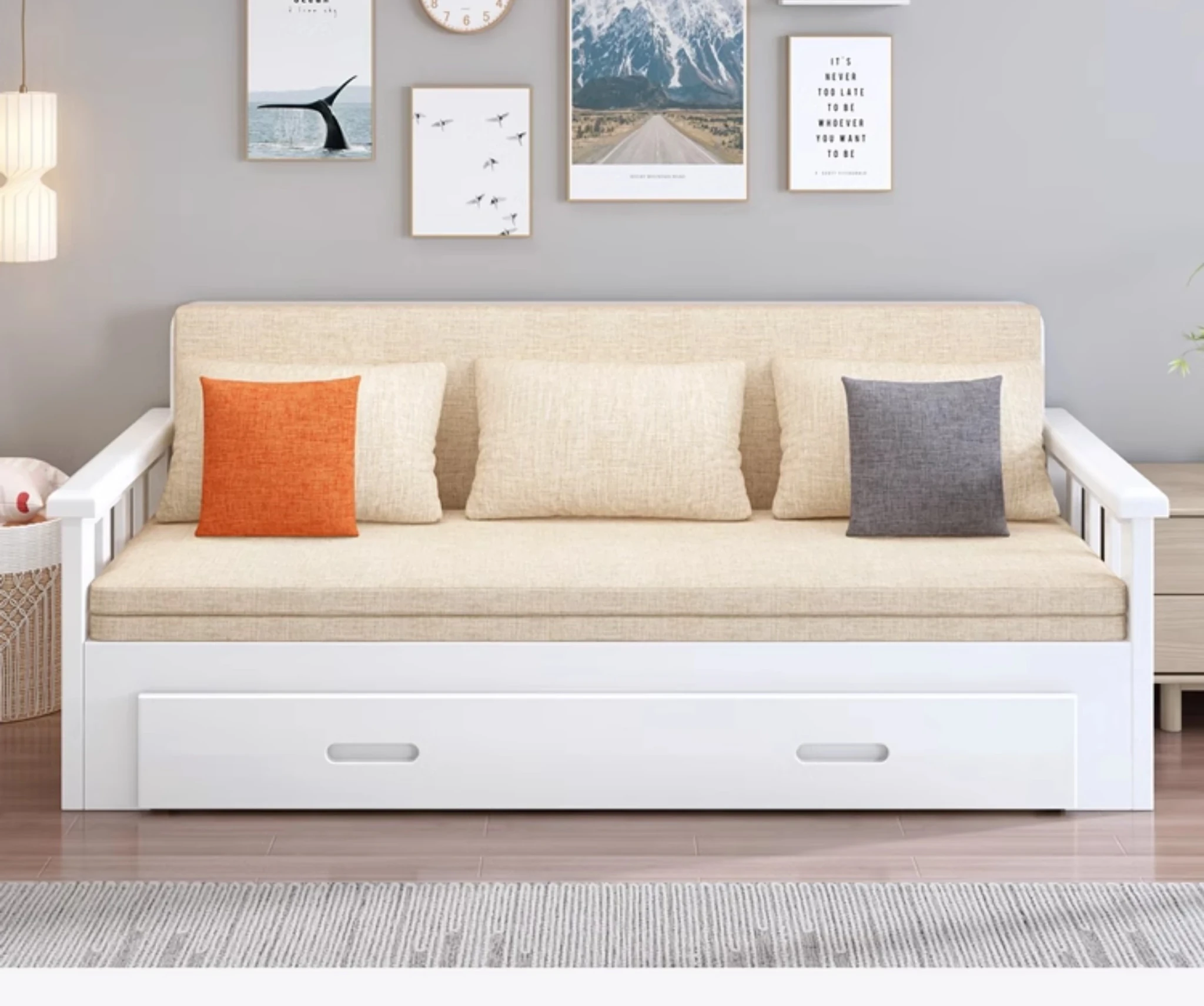 【Free Shipping from Hong Kong】Foldable Solid Wood Sofa Bed - Multifunctional Space-Saving Sleeper for Small Living Rooms, Perfect for Dual Use
