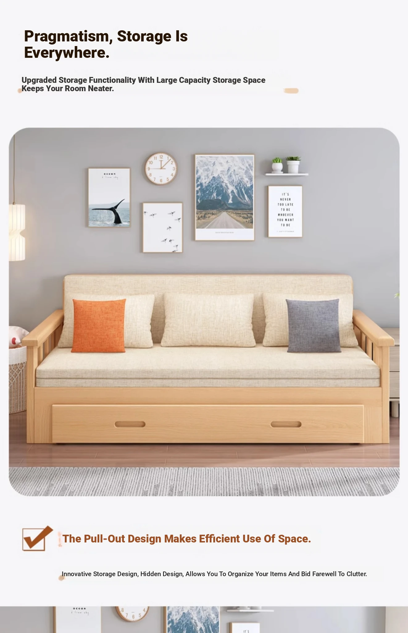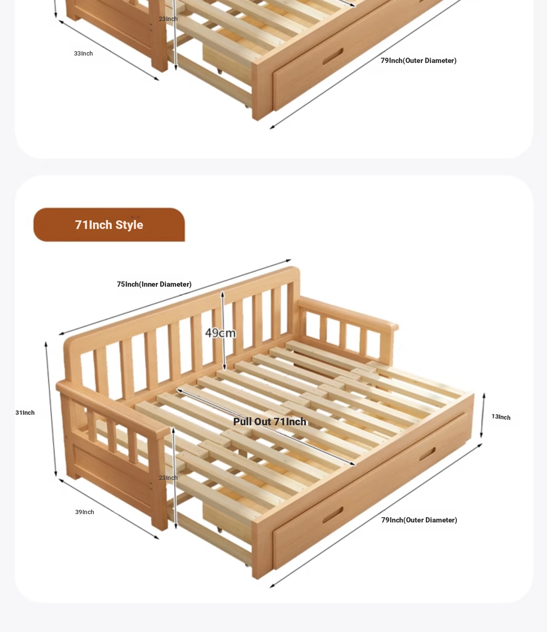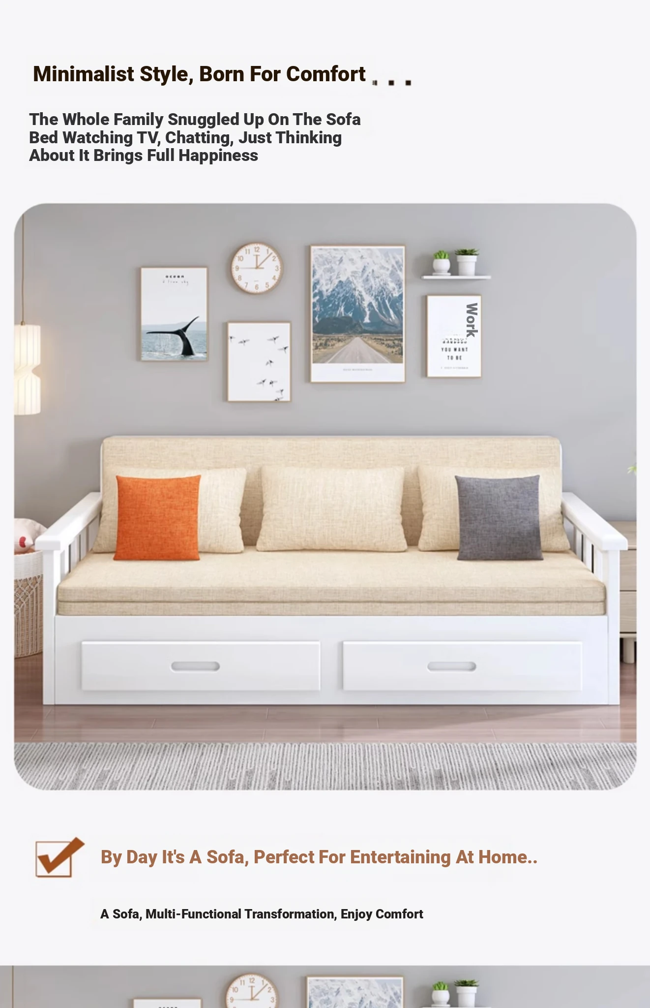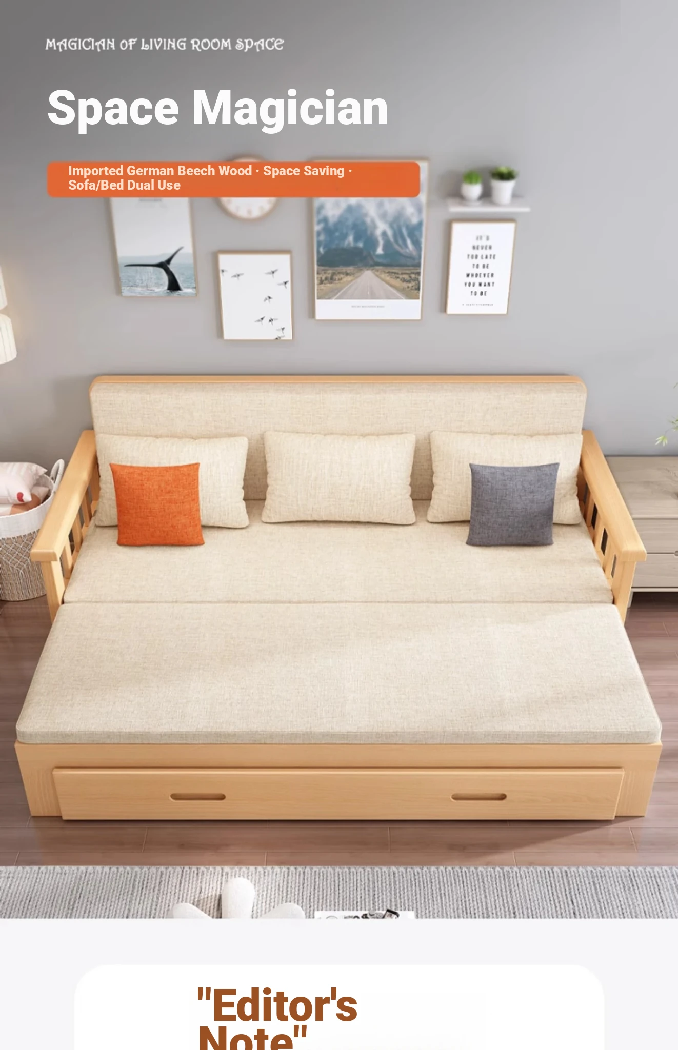 【Free Shipping from Hong Kong】Foldable Solid Wood Sofa Bed - Multifunctional Space-Saving Sleeper for Small Living Rooms, Perfect for Dual Use