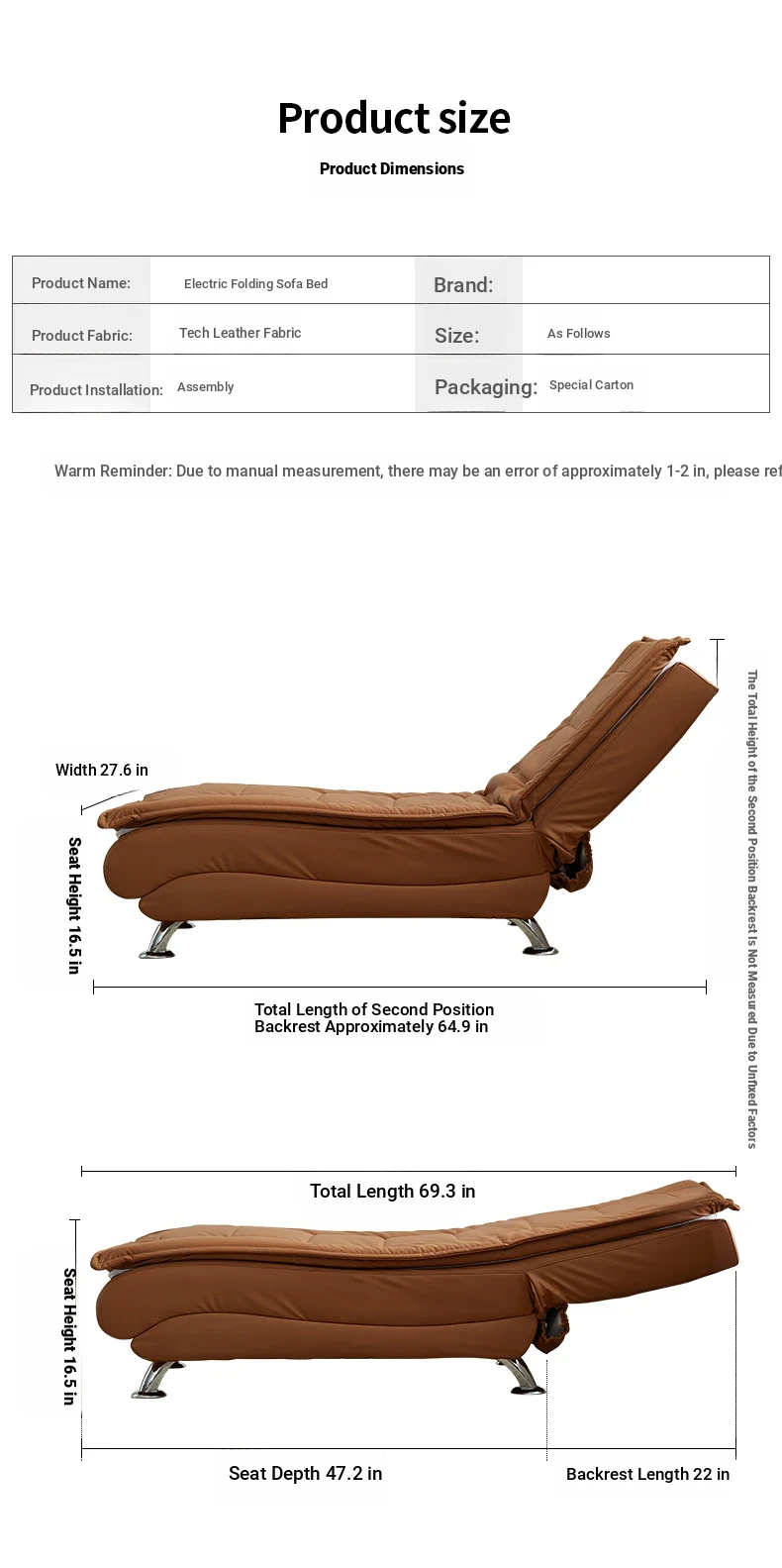 Technology cloth Brown (manual) long 175 sitting height 45 width 70