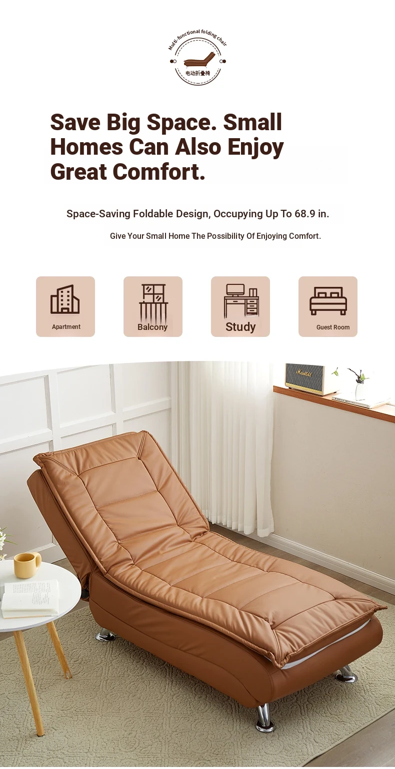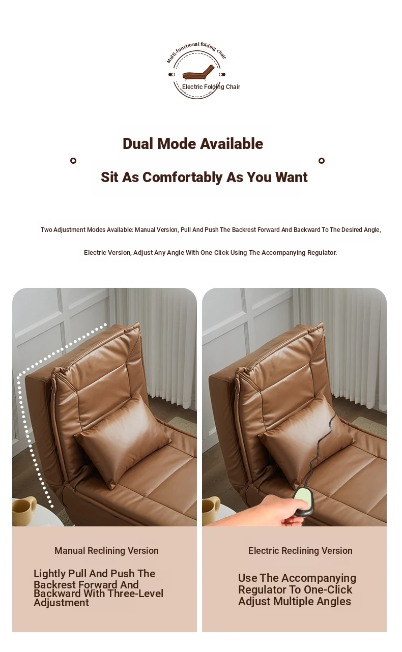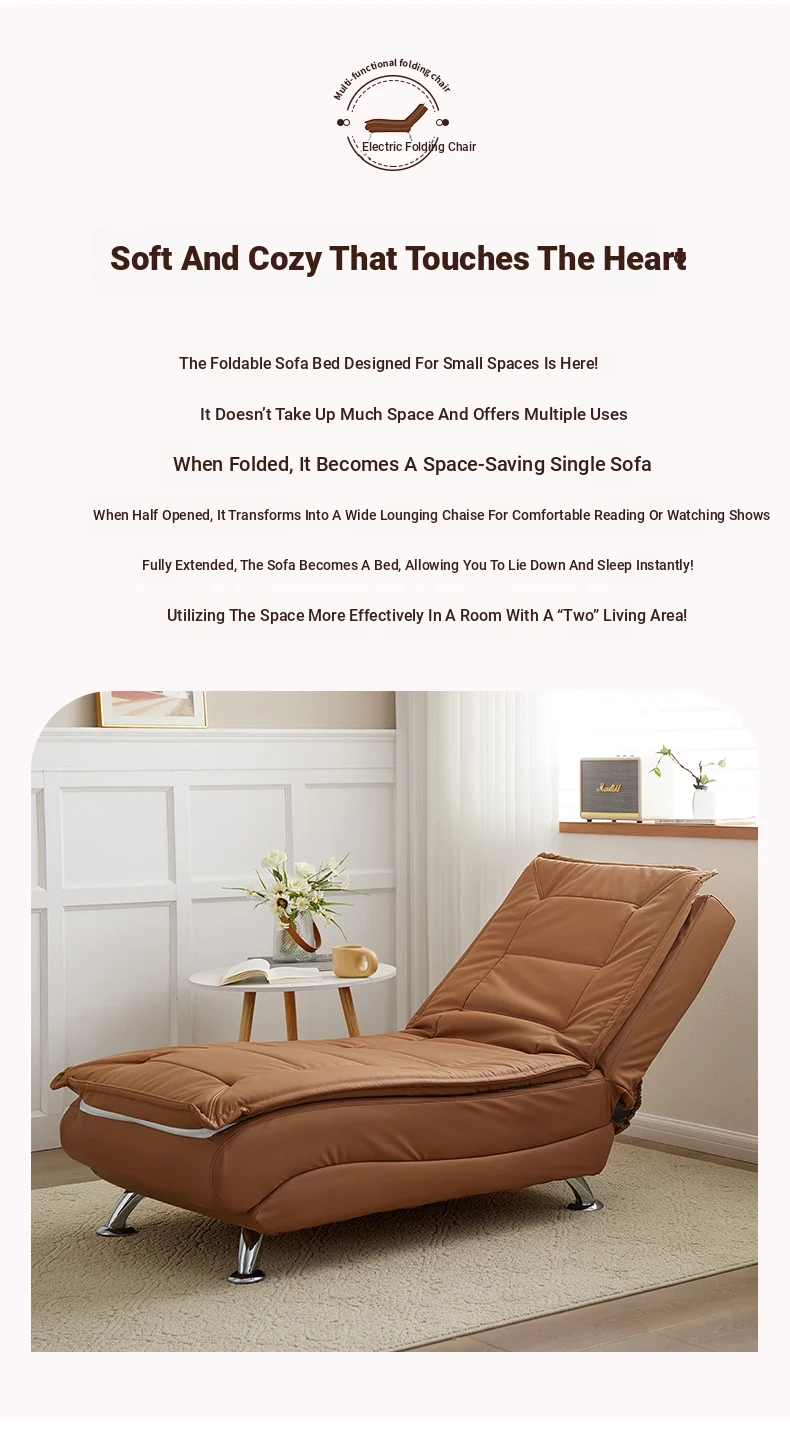 Luxury Reclining Chaise Lounge Sofa - Versatile Electric Folding Sofa Bed for Small Spaces, Perfect for Bedrooms and Living Rooms, Ideal for Relaxation and Comfort.
