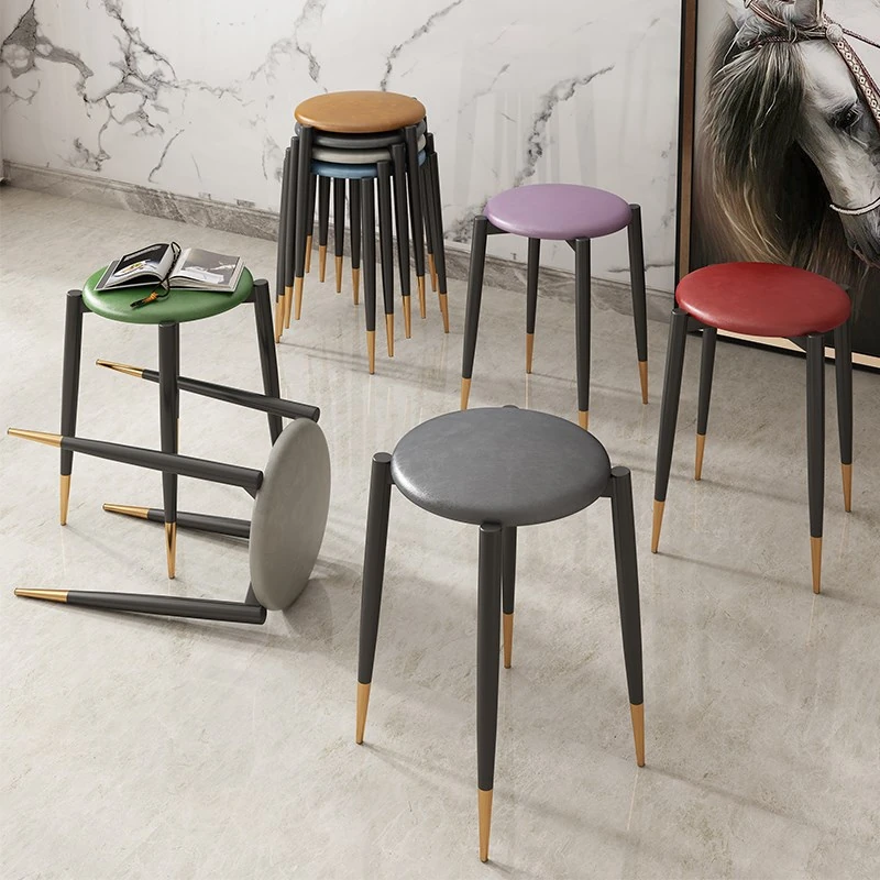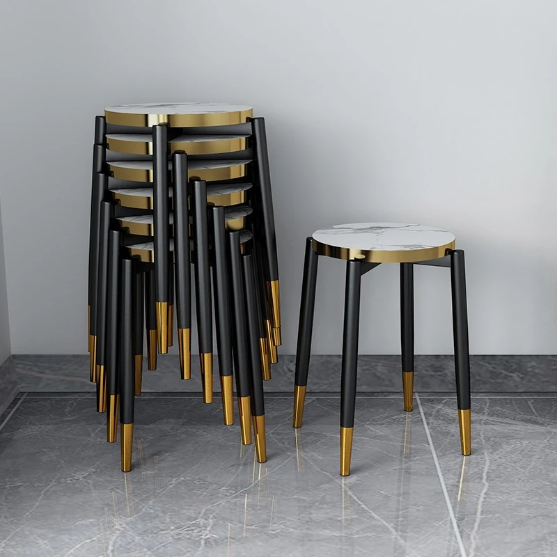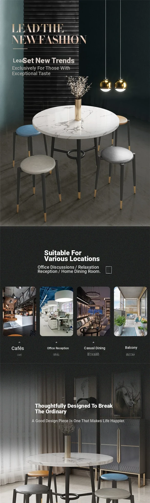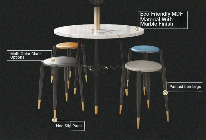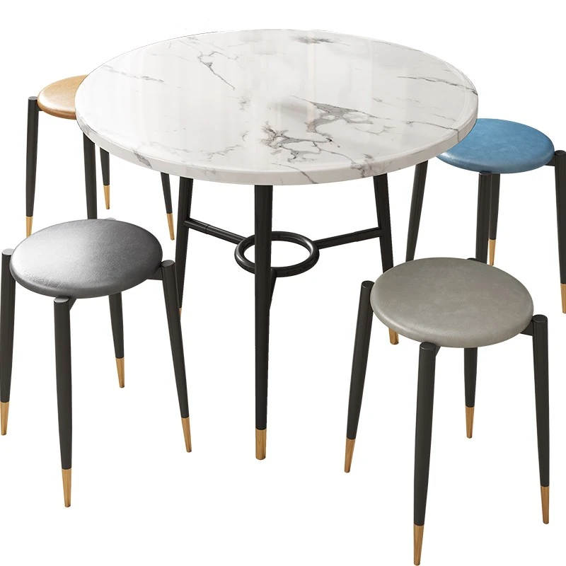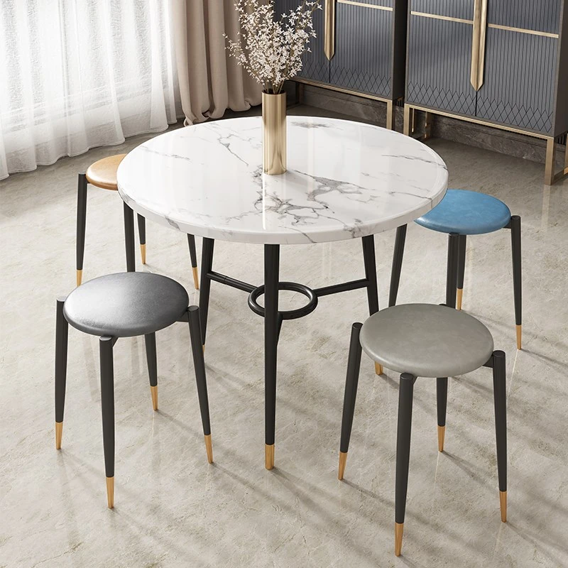 Modern Nordic Dining Table Set for 4 - Stylish Lightweight Luxury, Space-Saving Design for Small Apartments, Includes Stackable Round Stools. Perfect for Home and Hotel Use!
