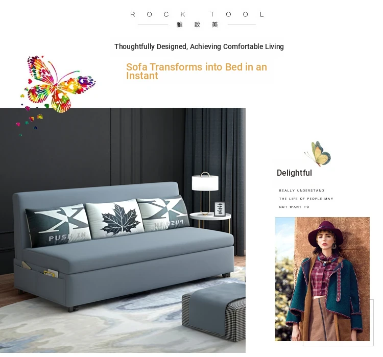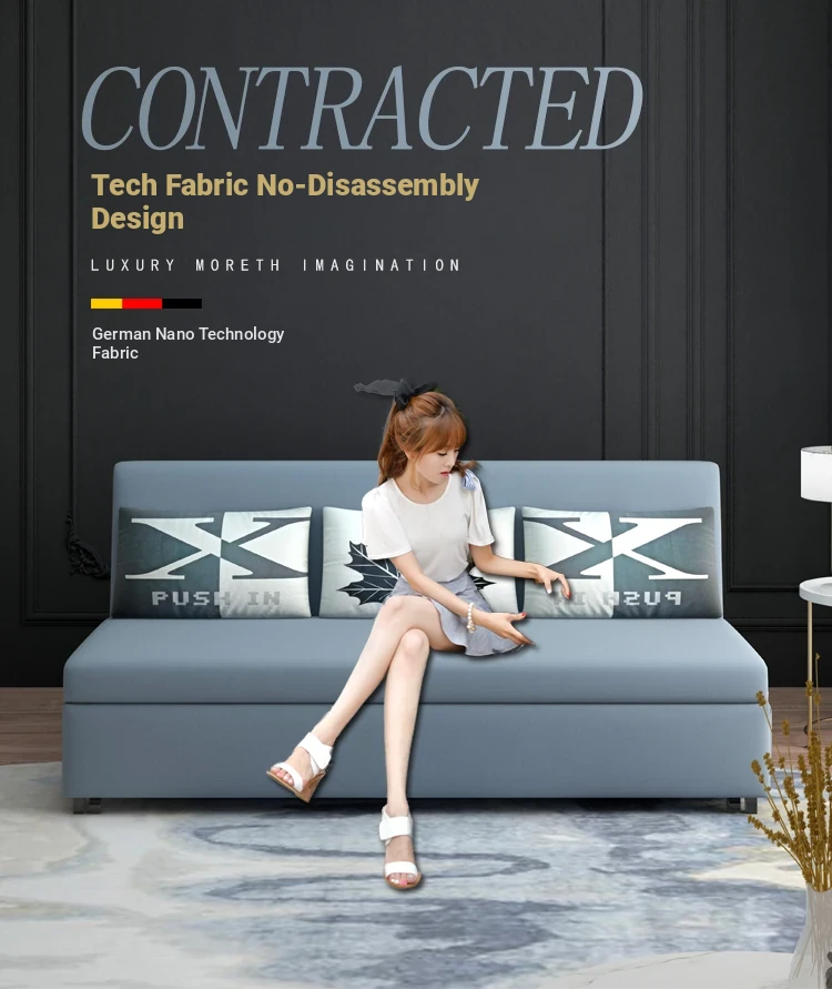 Multifunctional Folding Sofa Bed in Tech Fabric - Space-Saving Design for Small Living Rooms and Bedrooms, Perfect for Balconies and Guest Accommodations.
