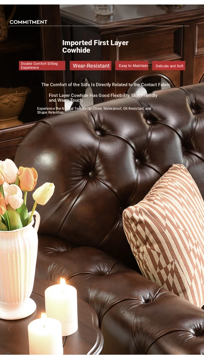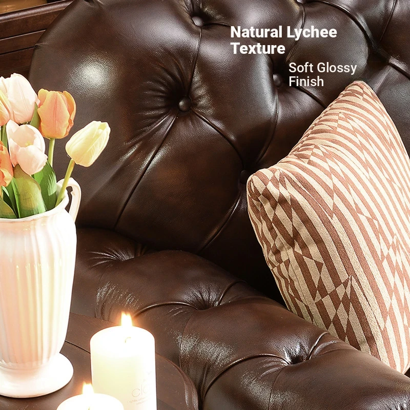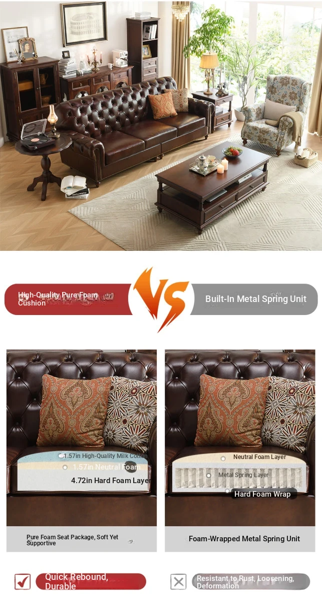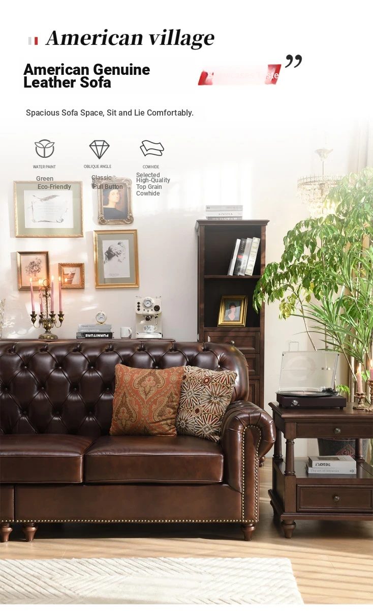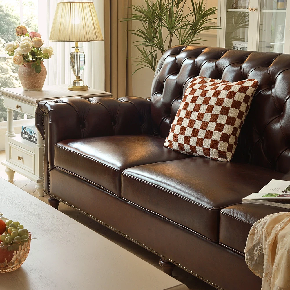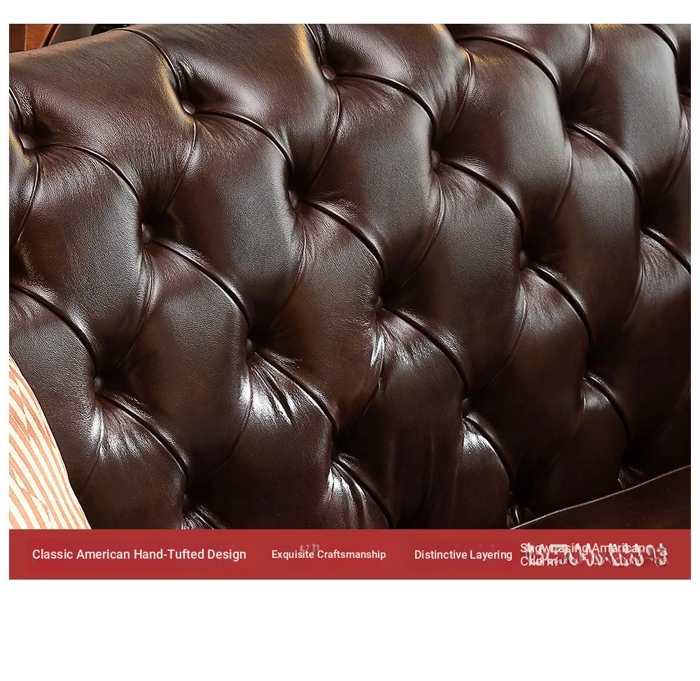 Vintage American Genuine Leather Sofa - Brown Top Grain Cowhide, 2.6m Straight 3-Seater & 4-Seater Living Room Furniture, Perfect Blend of Comfort and Style