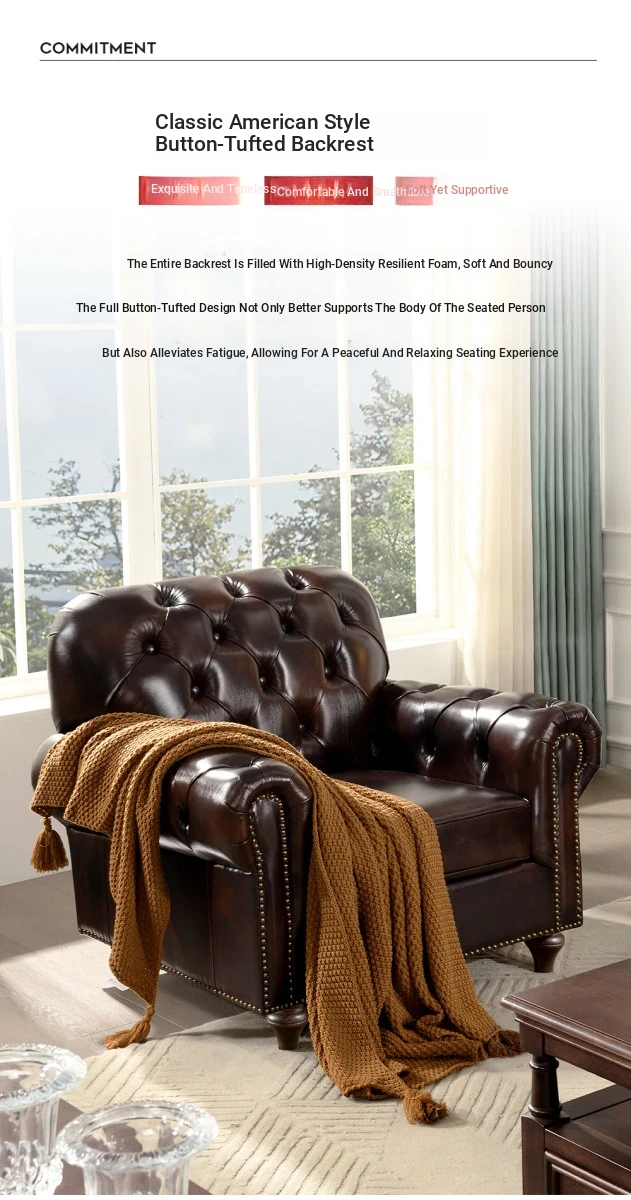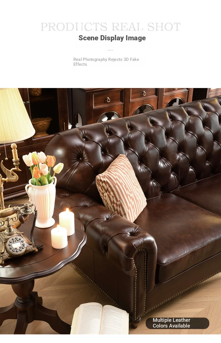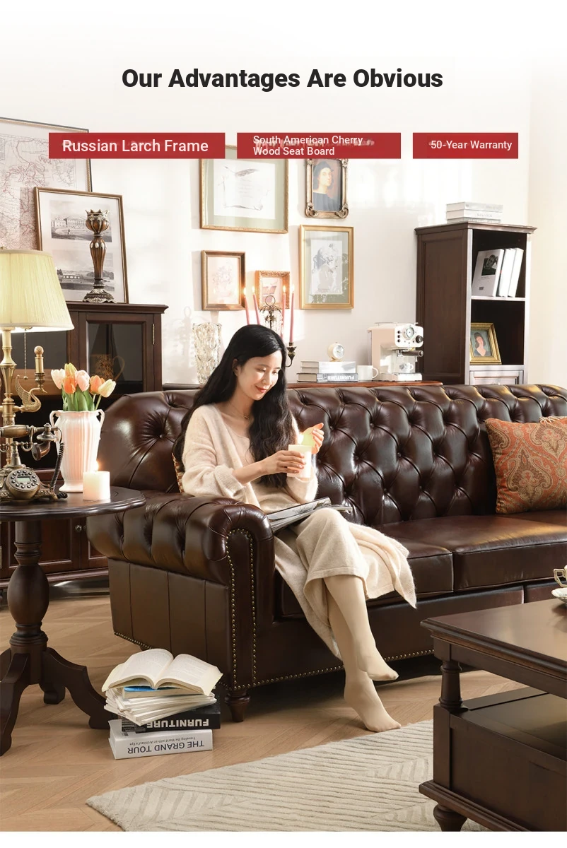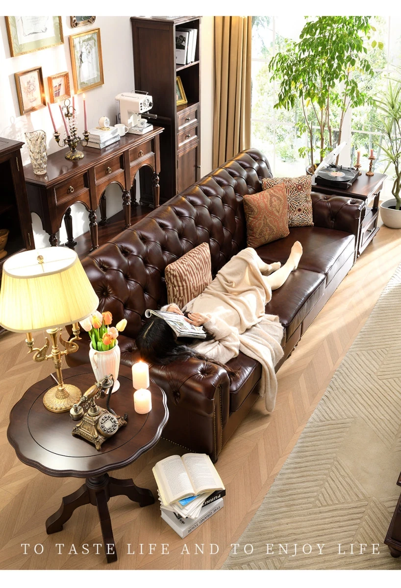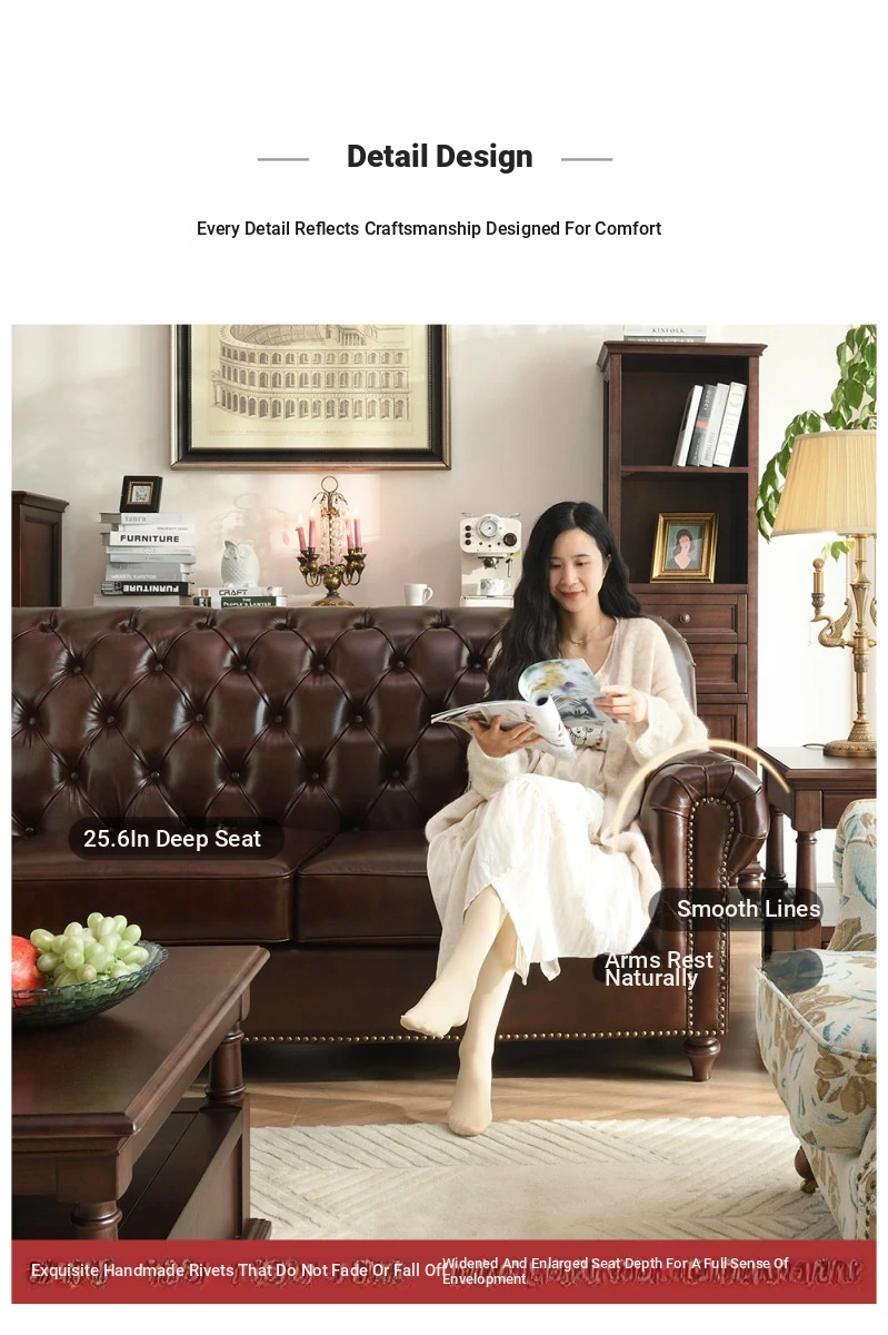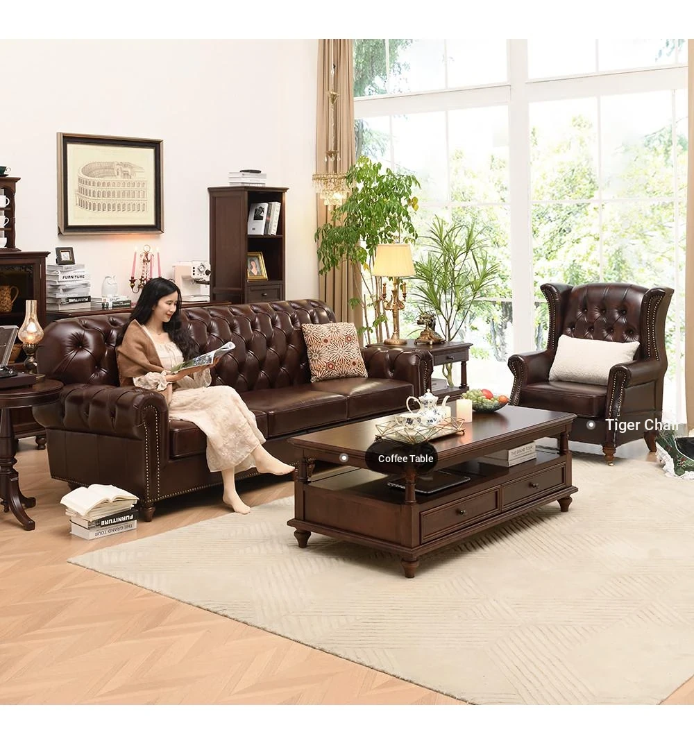 Vintage American Genuine Leather Sofa - Brown Top Grain Cowhide, 2.6m Straight 3-Seater & 4-Seater Living Room Furniture, Perfect Blend of Comfort and Style