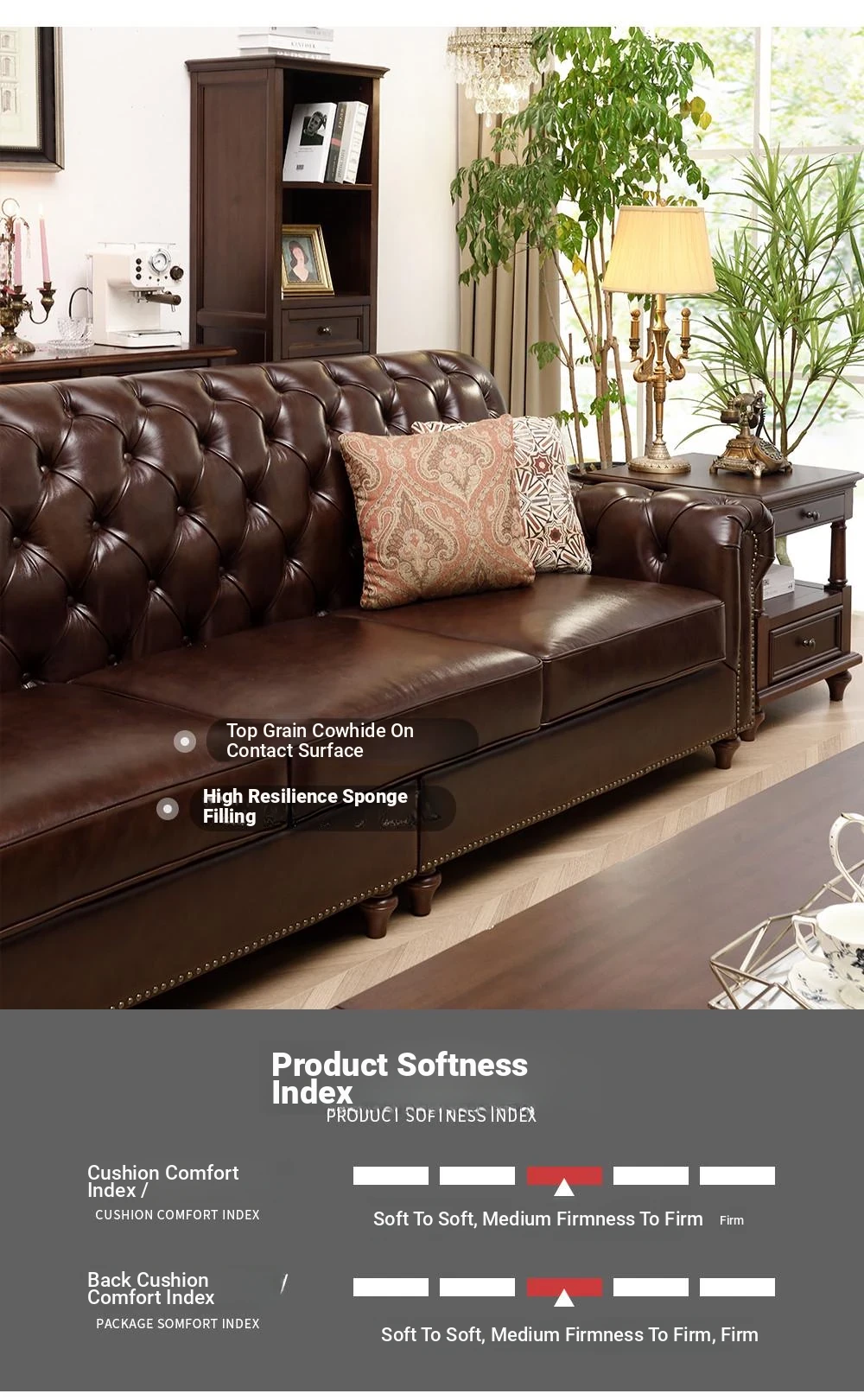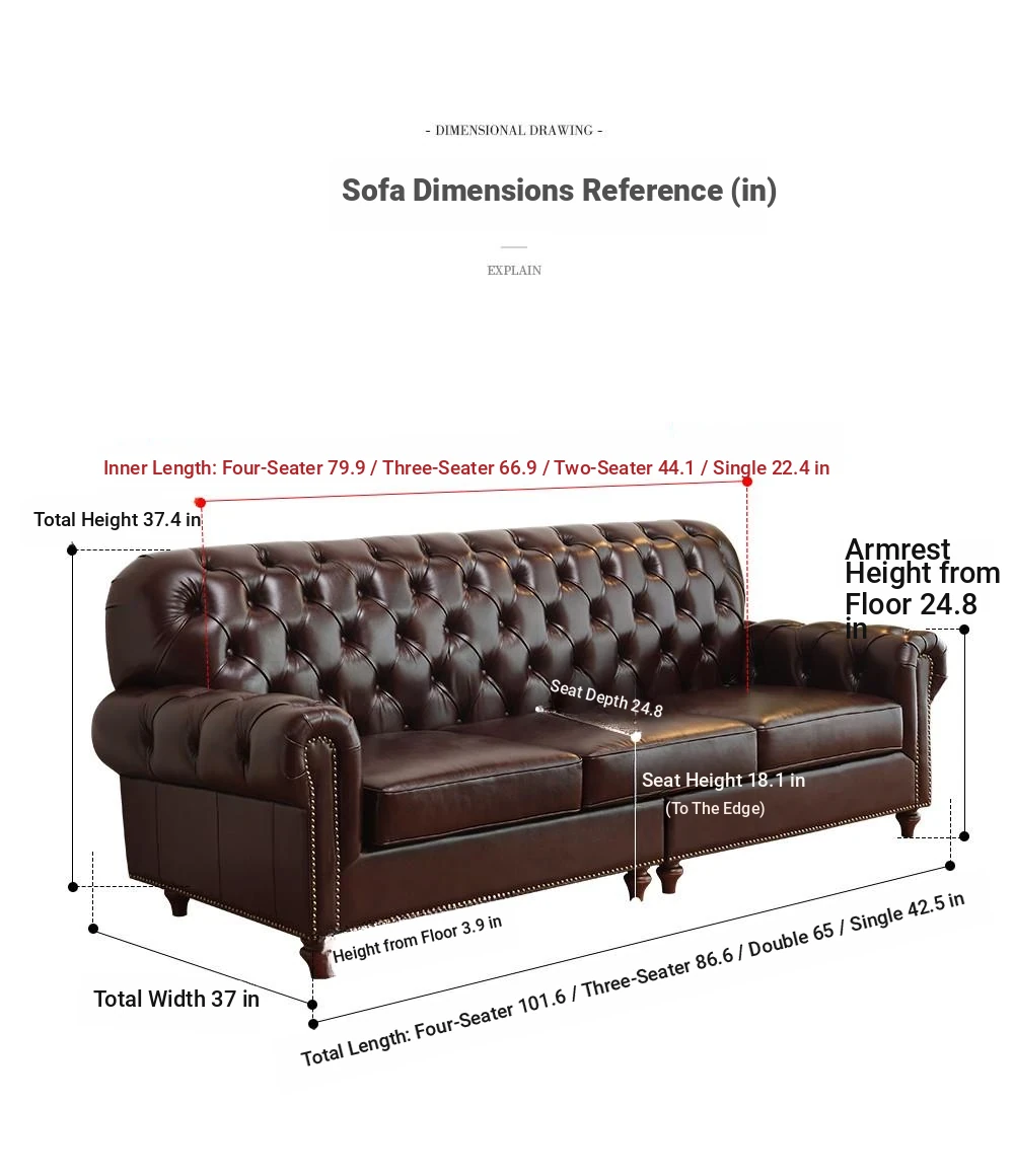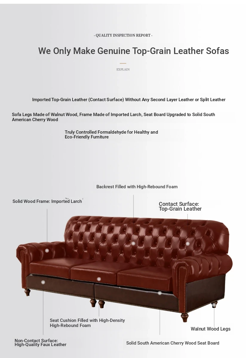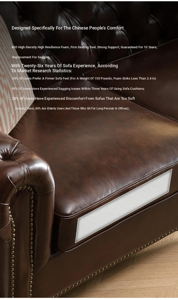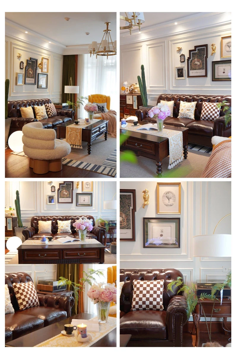 Vintage American Genuine Leather Sofa - Brown Top Grain Cowhide, 2.6m Straight 3-Seater & 4-Seater Living Room Furniture, Perfect Blend of Comfort and Style
