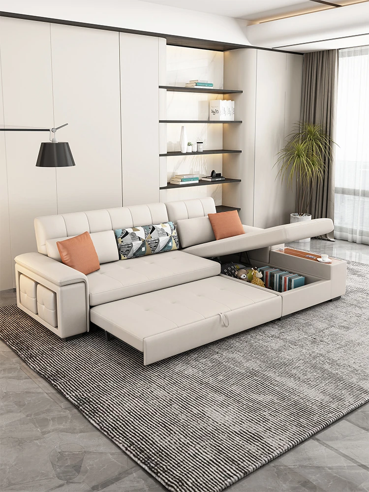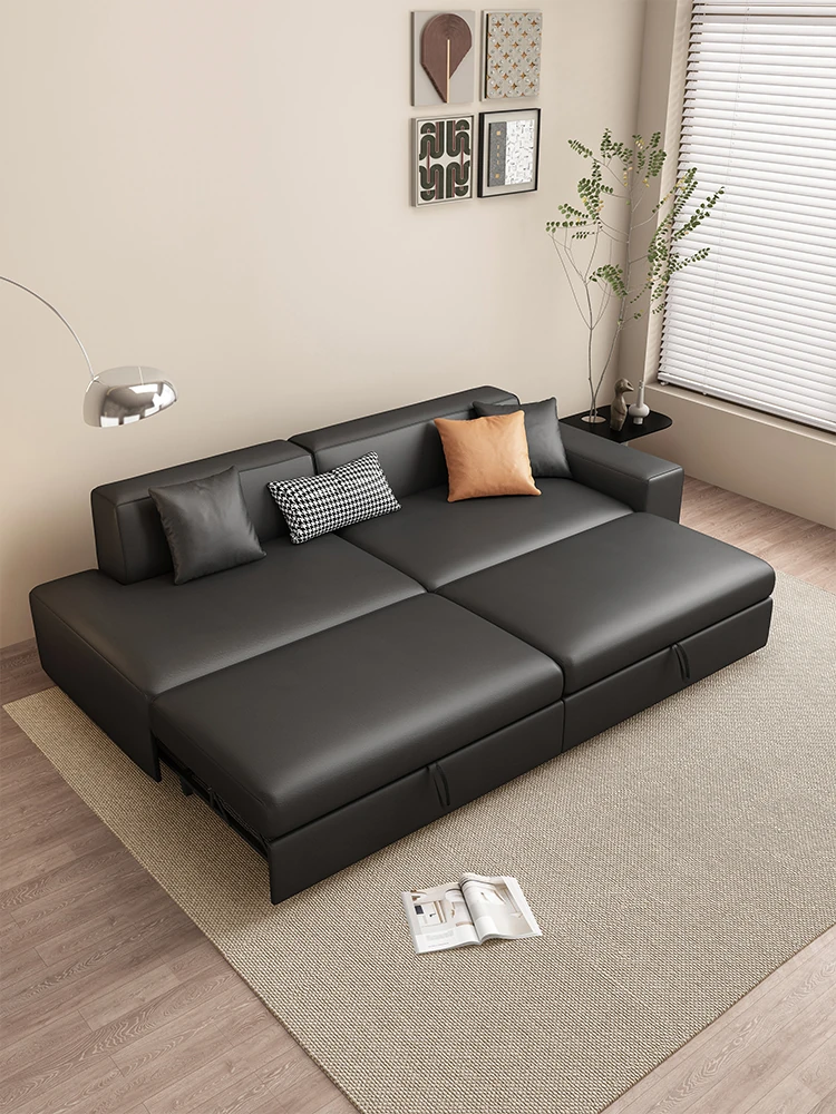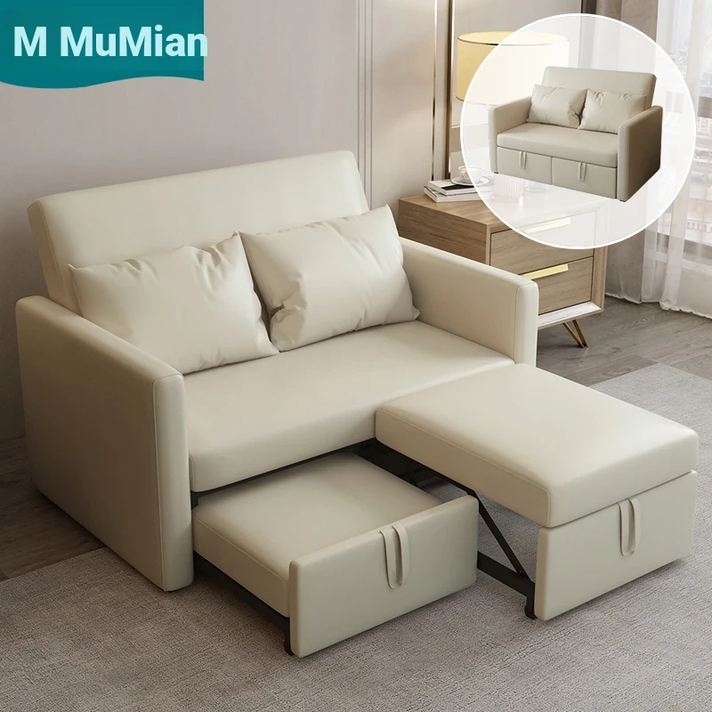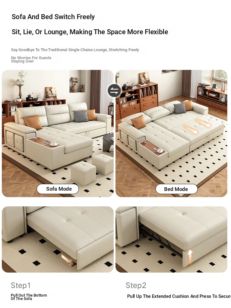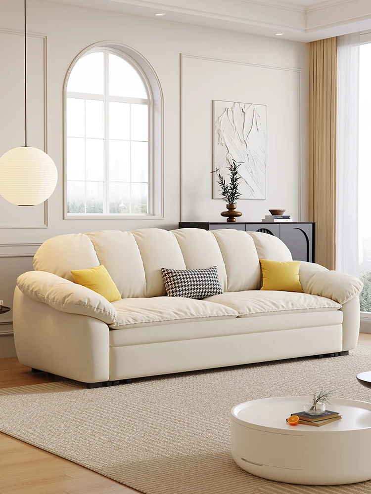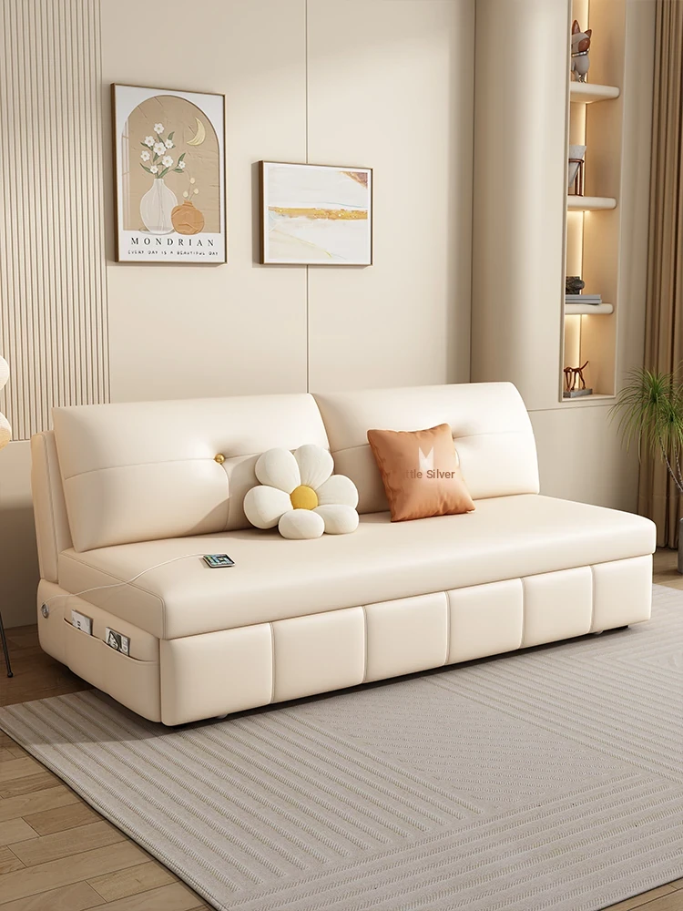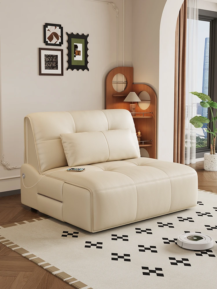 New Luxury Nappa Leather Sofa Bed for Small Spaces - Modern Minimalist Cream Style, Versatile Folding Design for Living Room & Bedroom Use