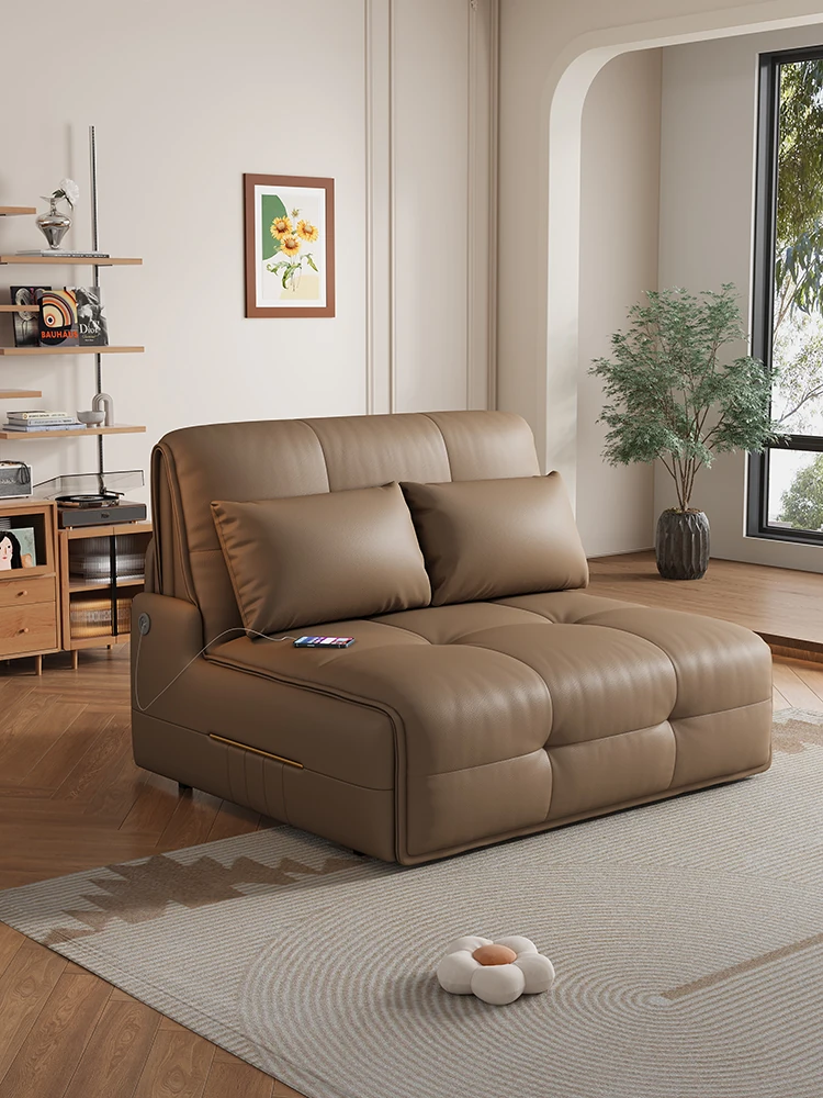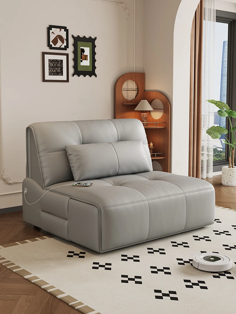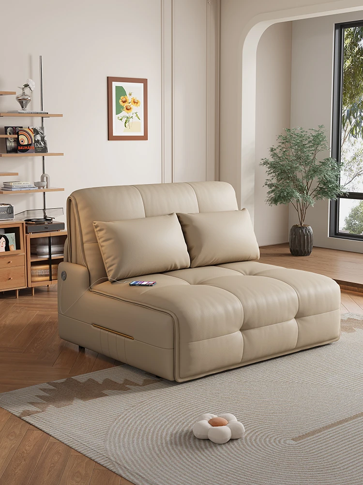 2025 New Arrival: Genuine Leather Smart Electric Sofa Bed – Space-Saving, Multi-Functional Folding Design for Small Living Rooms and Balconies