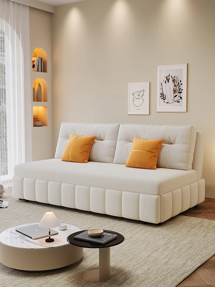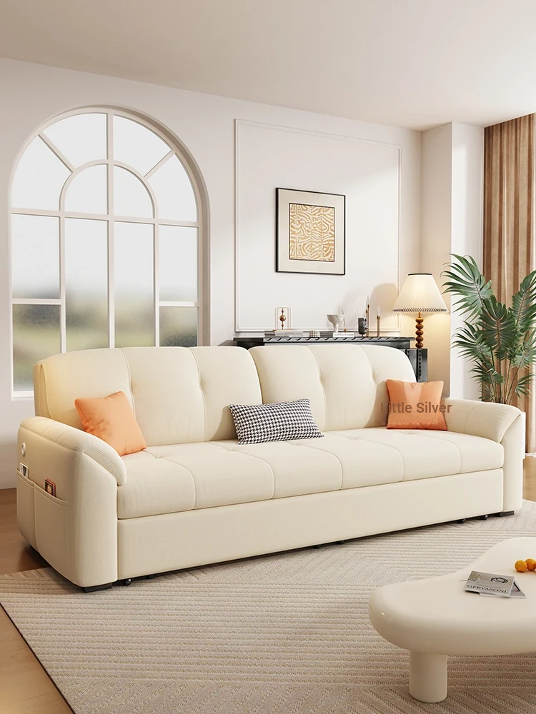 2025 New Cream Style Foldable Sofa Bed for Small Living Rooms - Versatile 2-in-1 Multifunctional Double/Single Sofa Bed