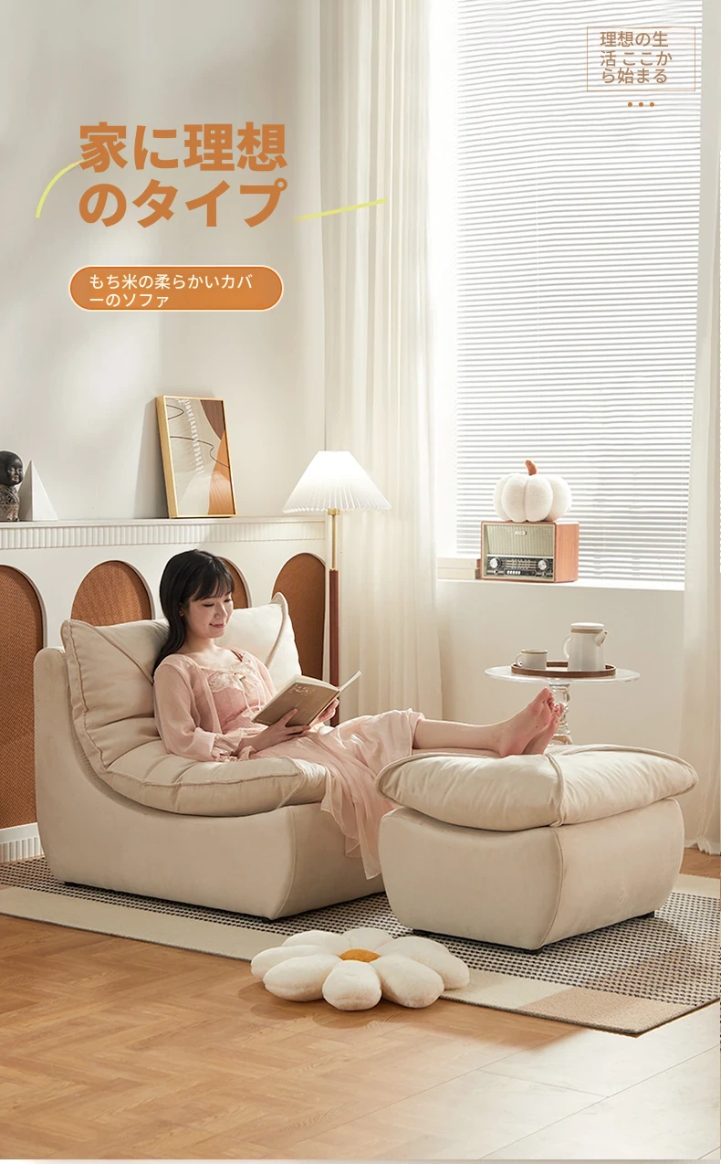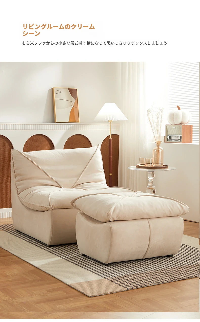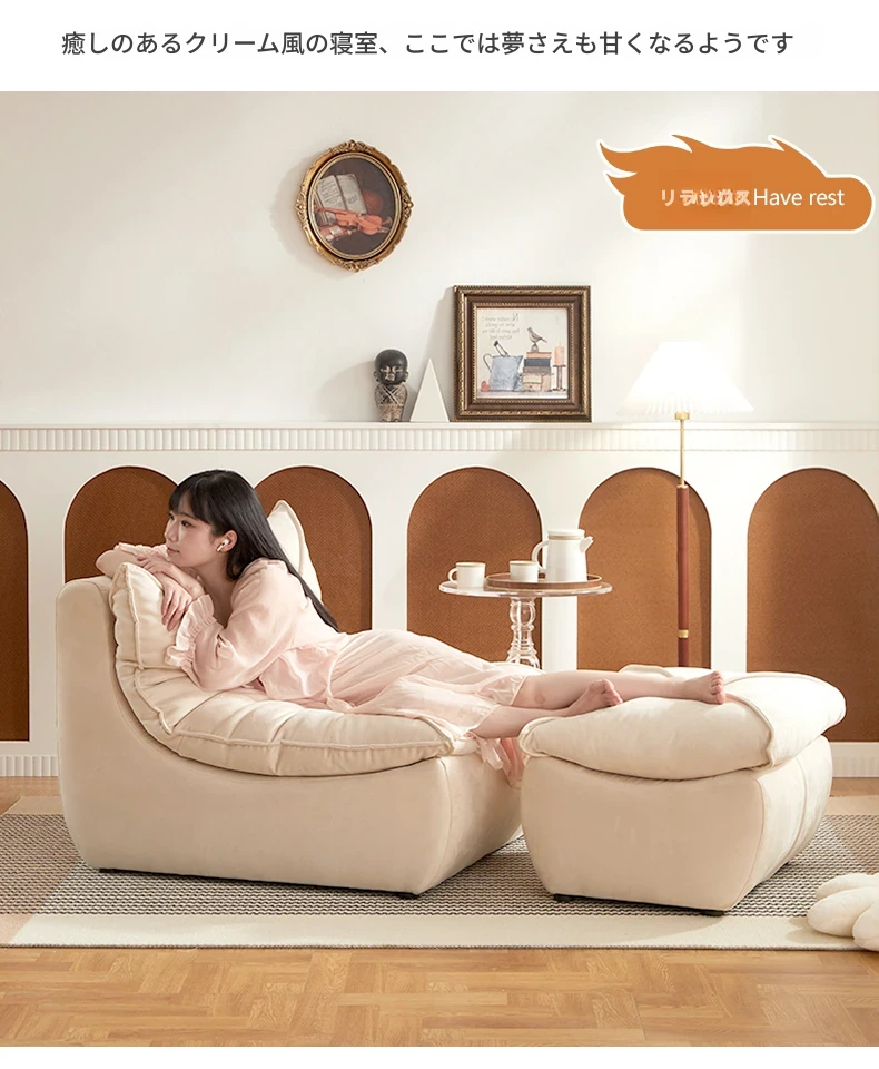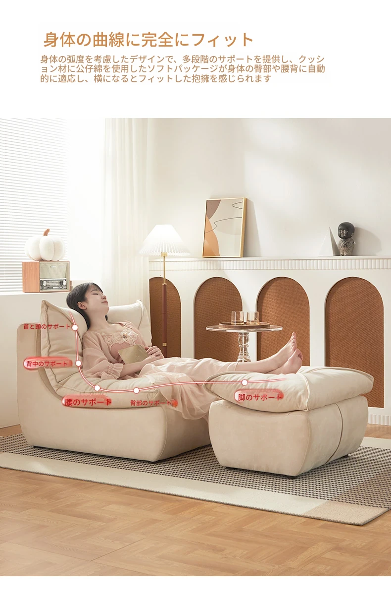 アイボリー-スエード+フットレスト【ダブルレイヤー充填 座れる・寝れる】