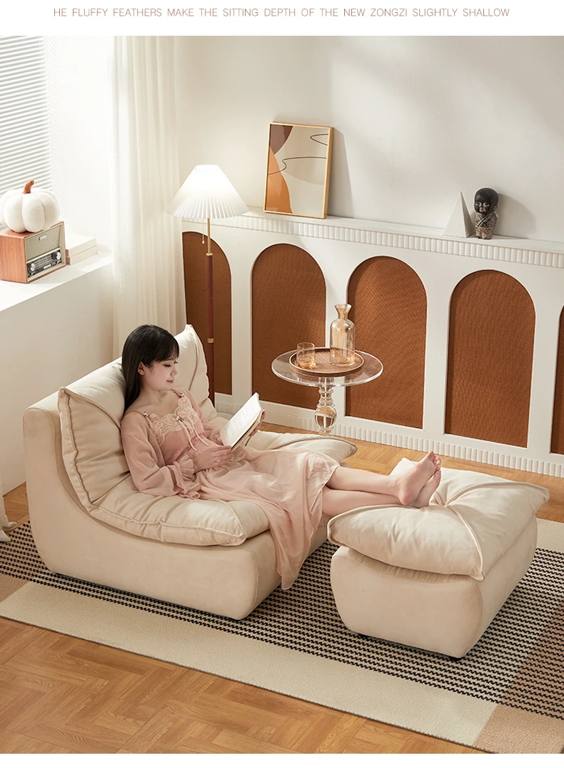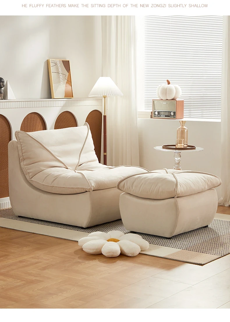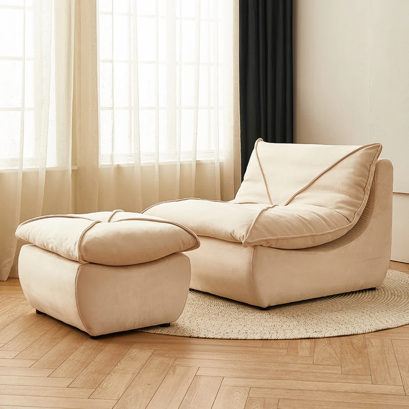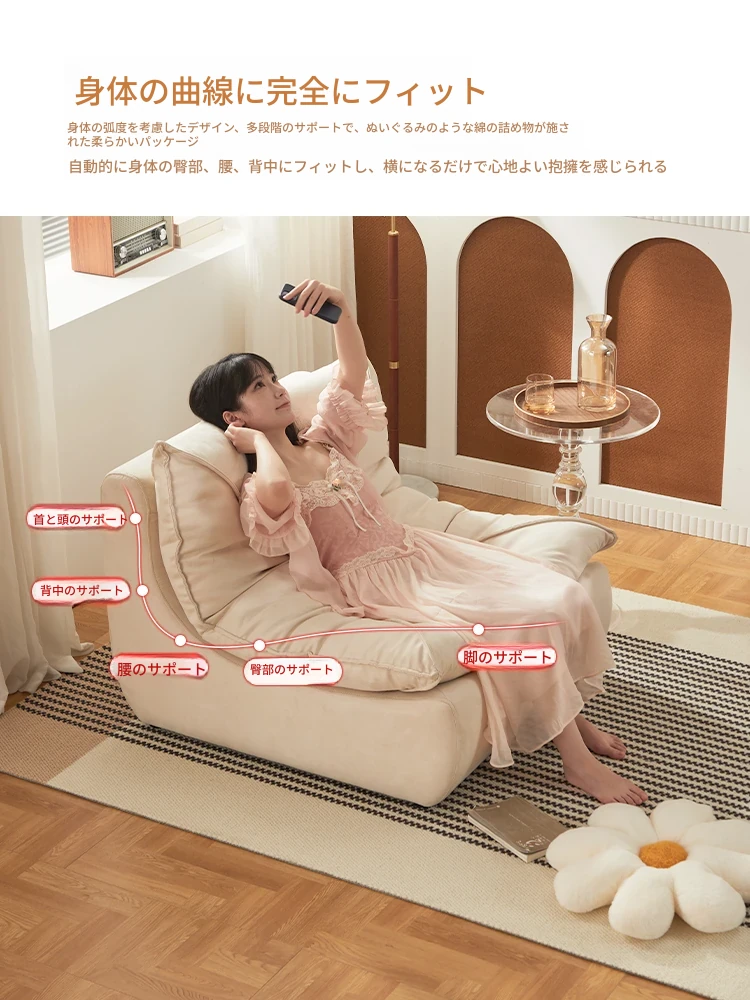 アイボリー-スエード+フットレスト【ダブルレイヤー充填 座れる・寝れる】