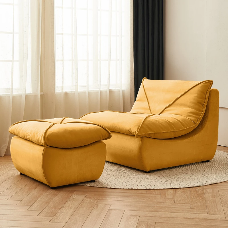 レモンイエロー-スエード+フットレスト【ダブルレイヤー充填 座れる・寝れる】