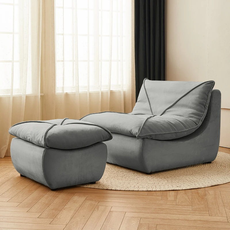 グレー-スエード+フットレスト【ダブルレイヤー充填 座れる・寝れる】