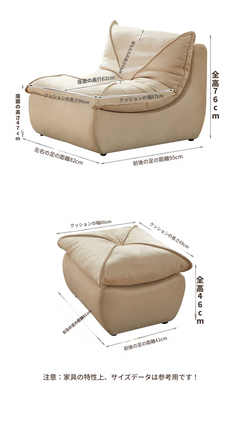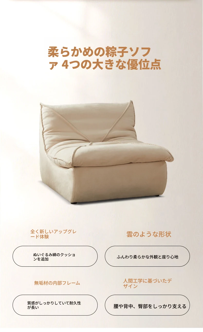 アイボリー-スエード【ダブルレイヤー充填 座れる・寝れる】