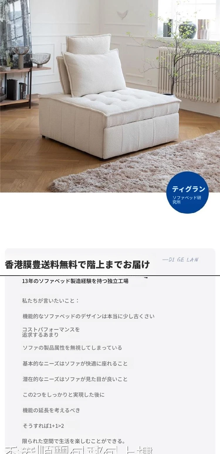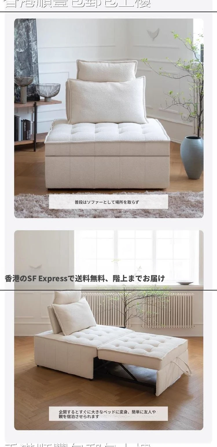 【香港送料無料】多機能ソファベッド!一人用折りたたみ式、豆腐ブロックデザインで伸縮自在。リビング、バルコニー、書斎にぴったり!快適な座り心地と寝心地を実現!