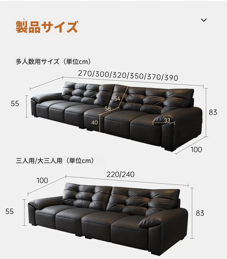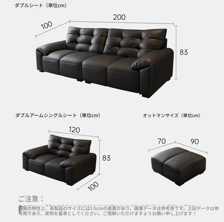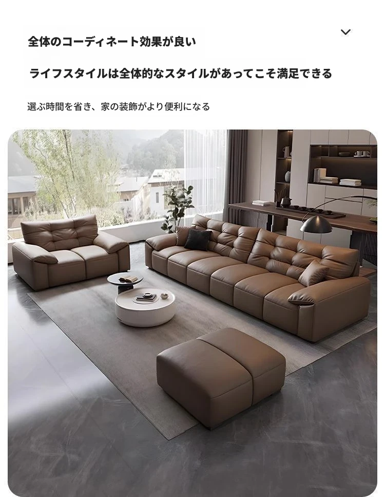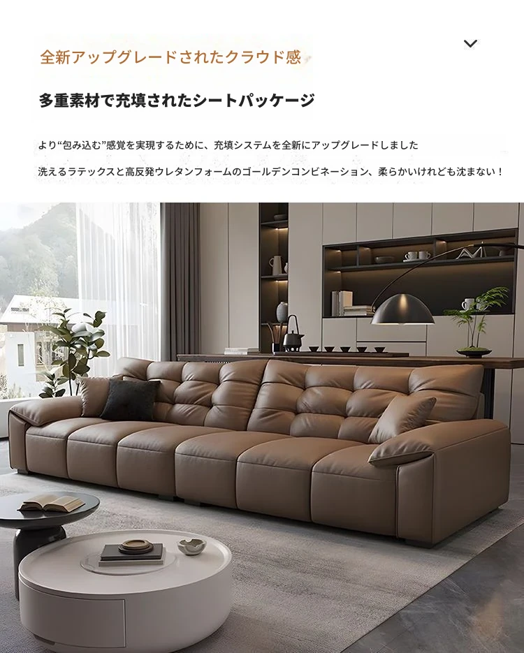 本革製 エレファントイヤー ソファ 小型リビング向け イタリアンミニマリズム 現代的なシンプルデザイン 大黒クマレザーソファ 優れた耐久性とスタイルで、あなたの空間を華やかにします!