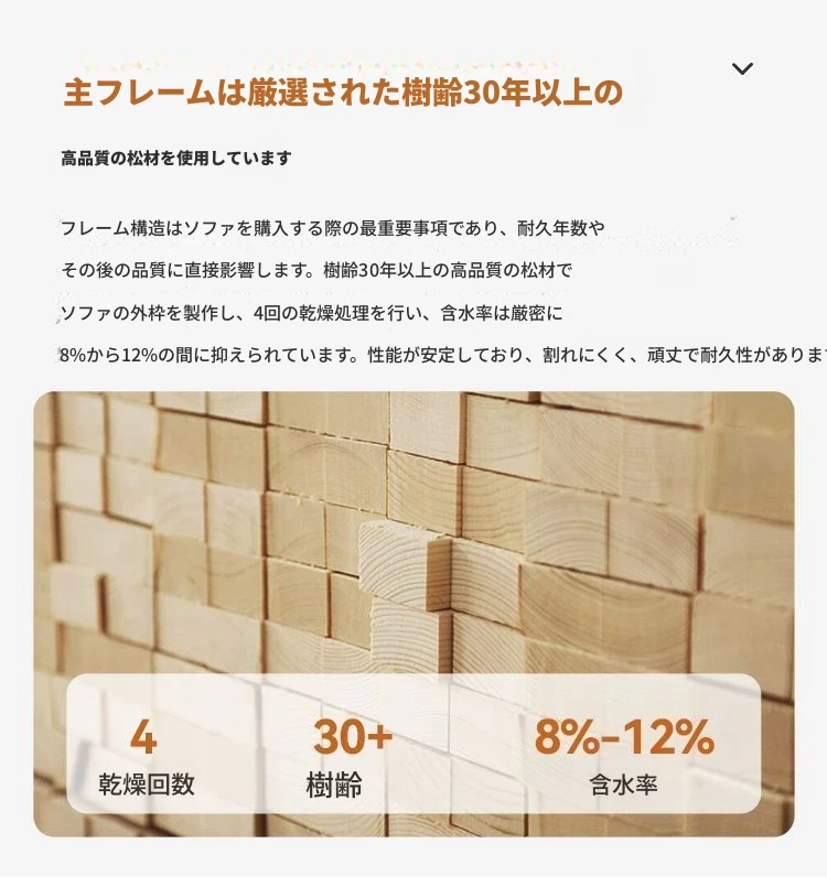 3.7メートル丨6人掛け【無垢材フレーム】
