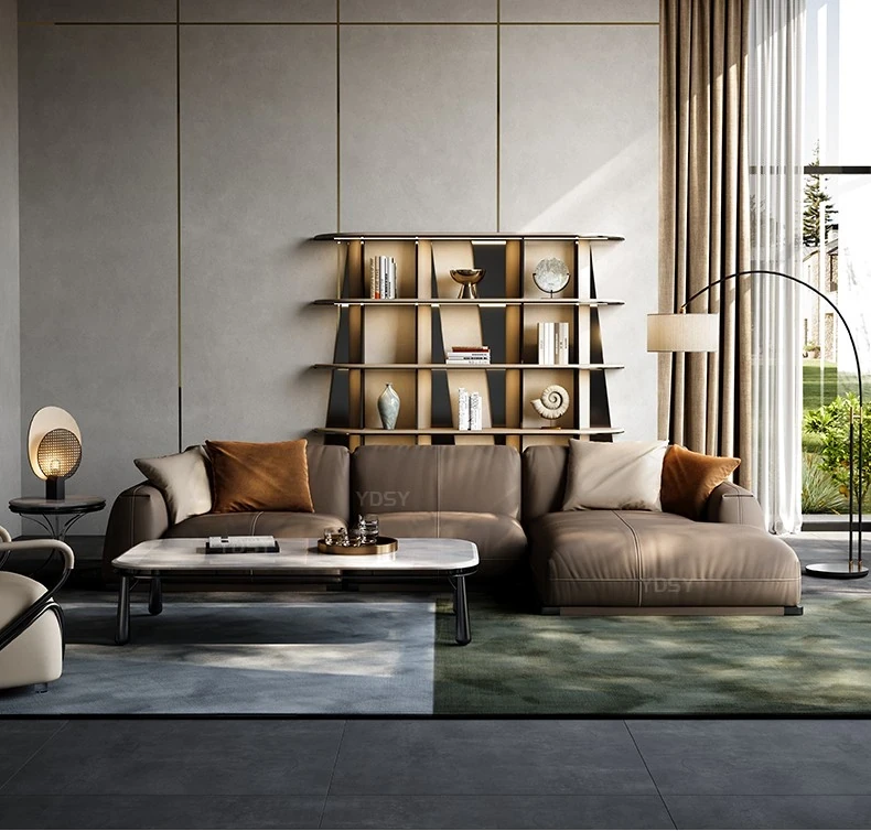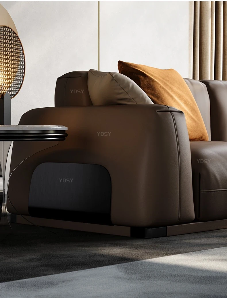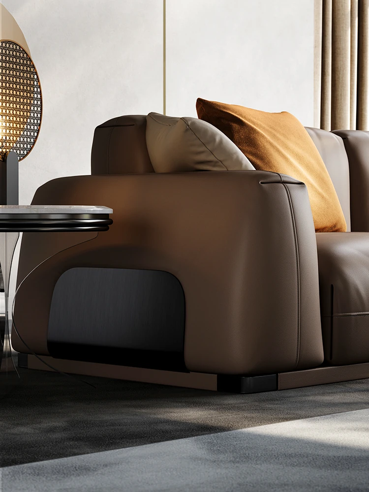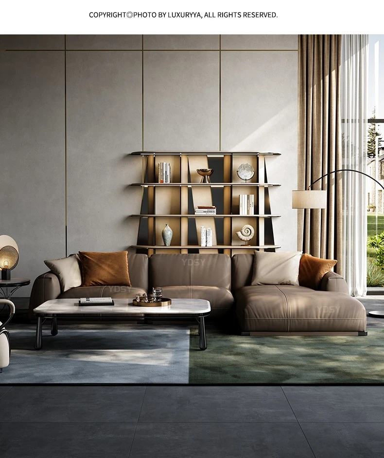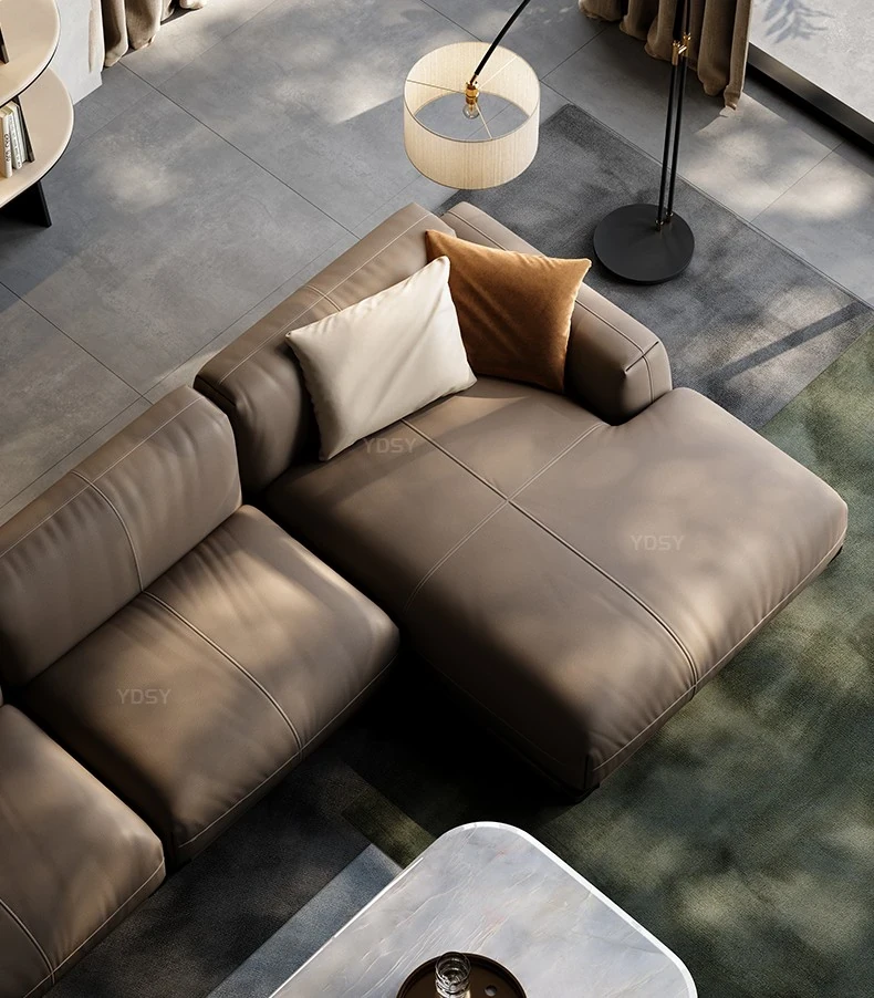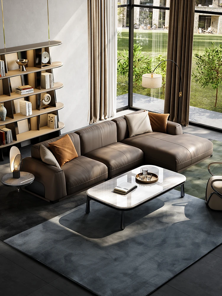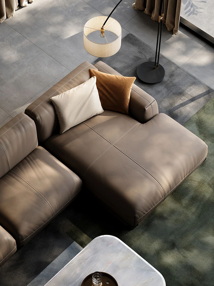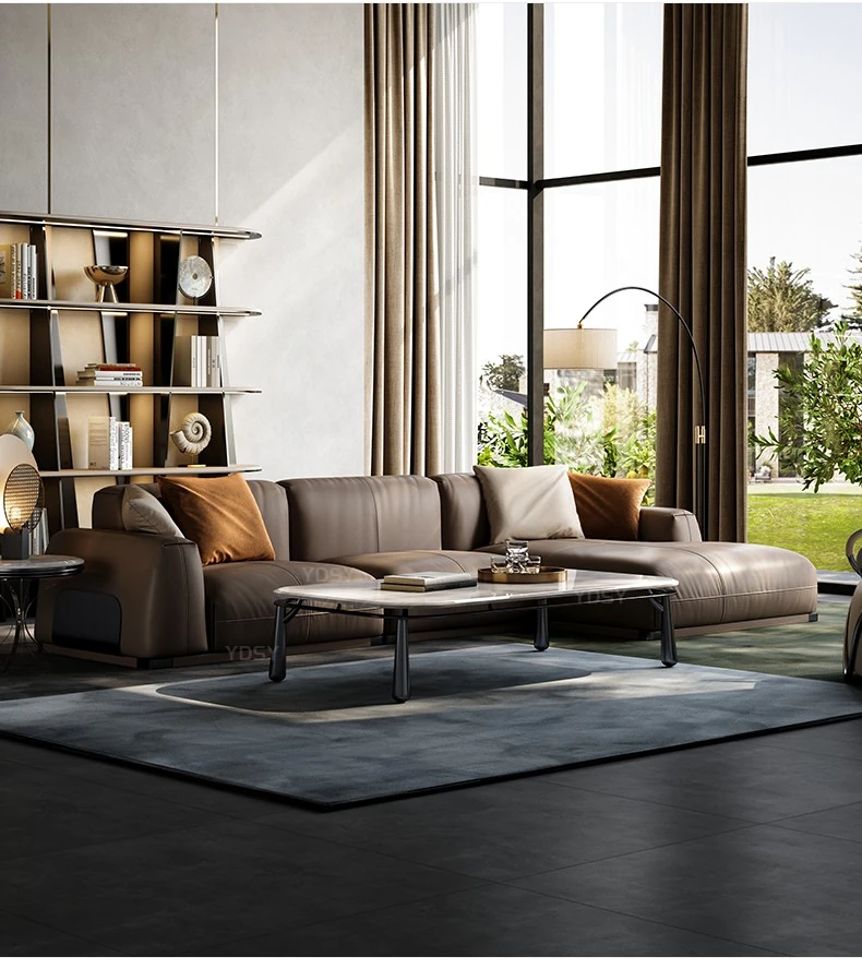 Luxury Genuine Leather Sofa for Villas - Modern Minimalist Corner Couch Set for Your Living Room, Exudes Elegance and Comfort