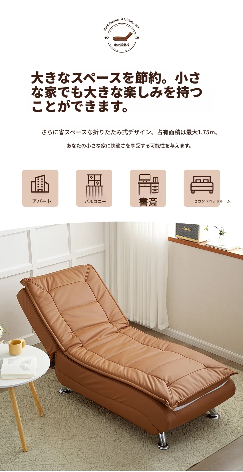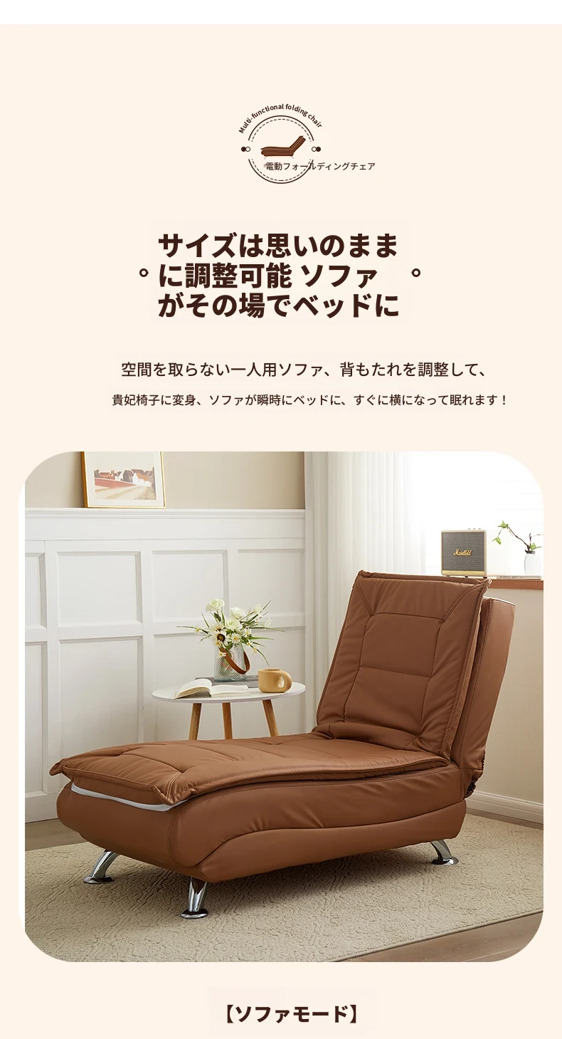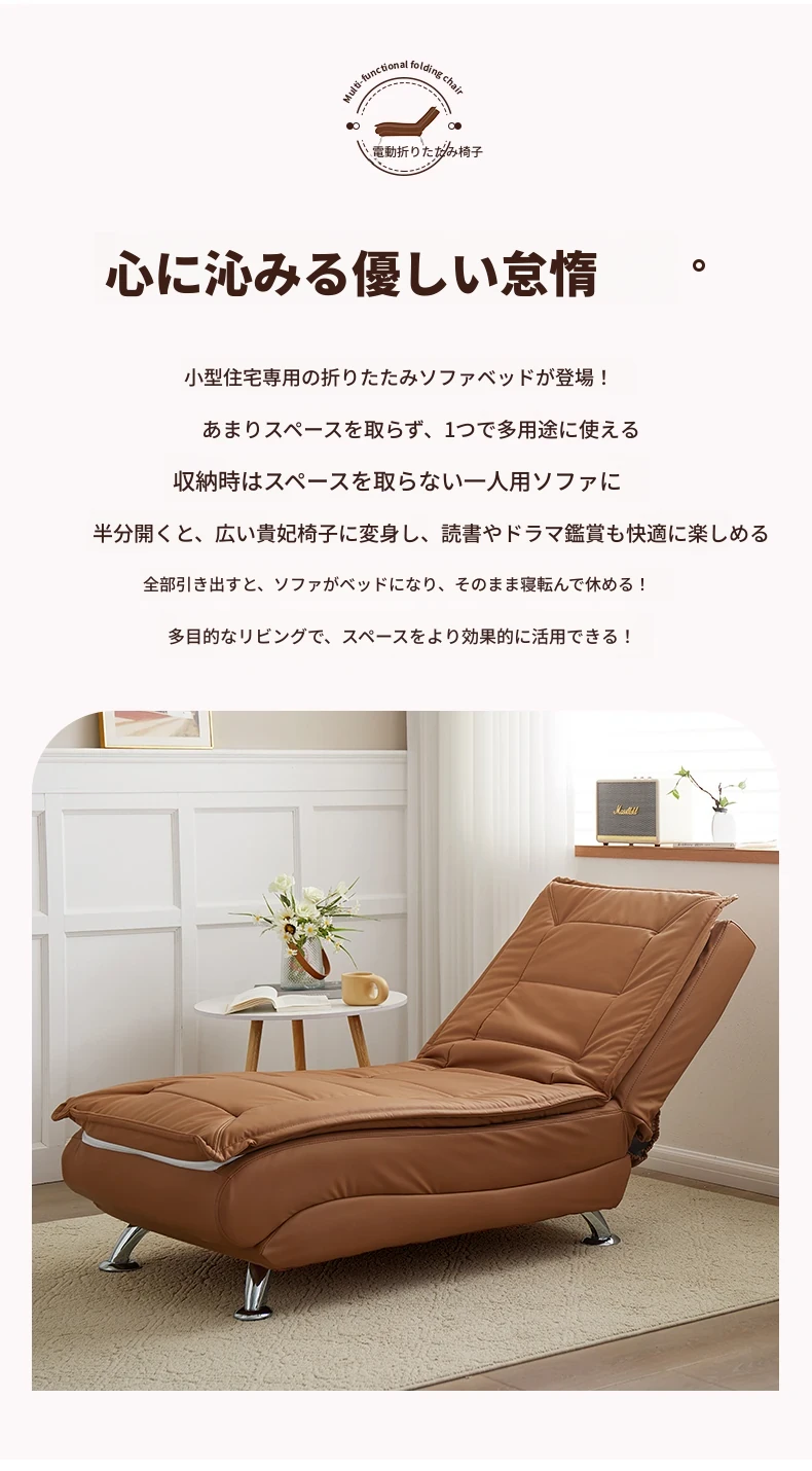 優雅な貴妃ソファ|リクライニング機能付き、寝心地抜群の一人用ソファベッド|小型お部屋に最適!電動折りたたみ式で、快適なリラックスタイムを実現!