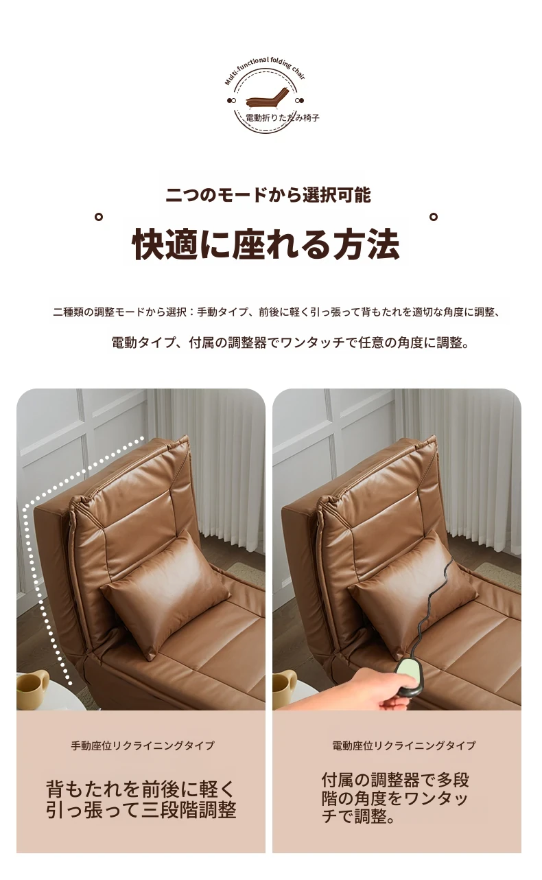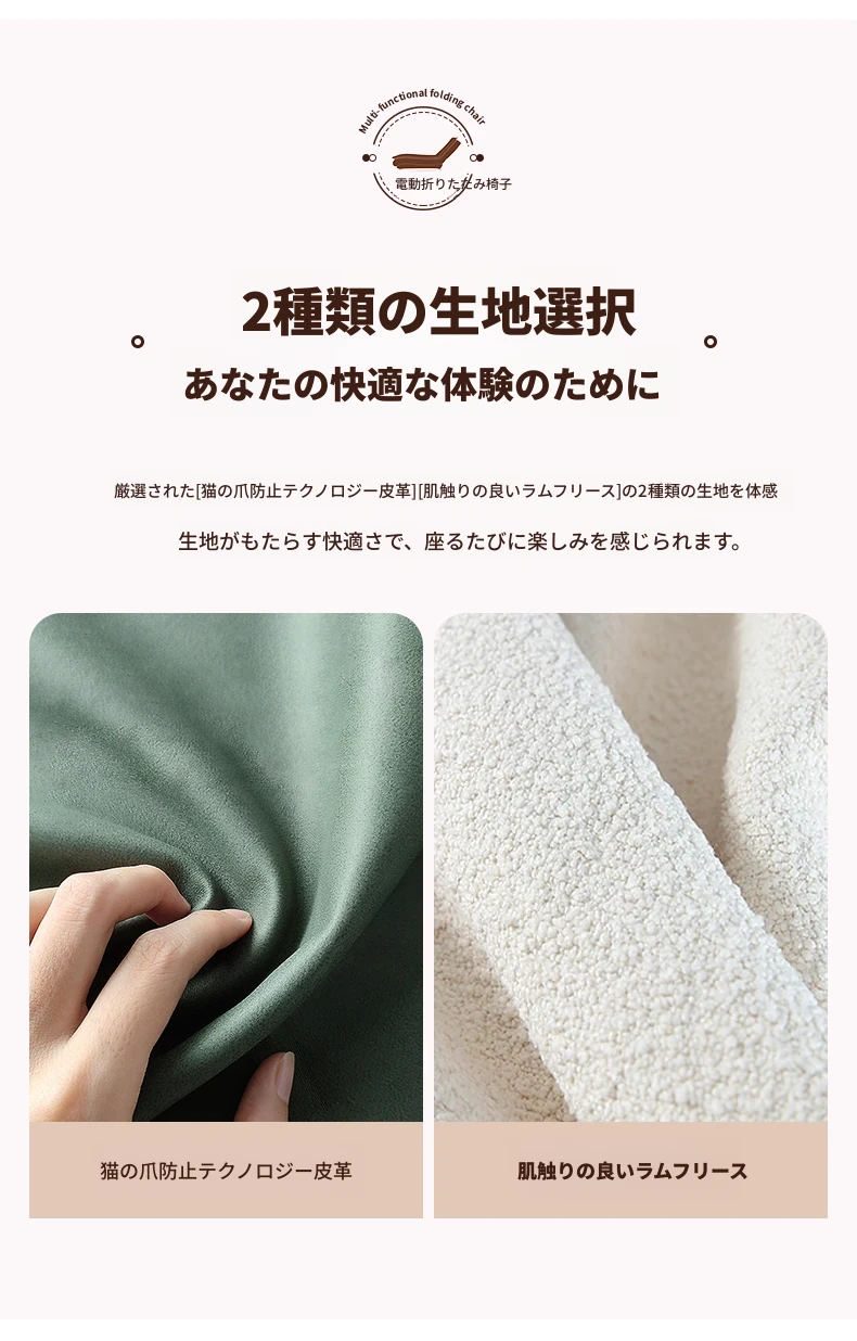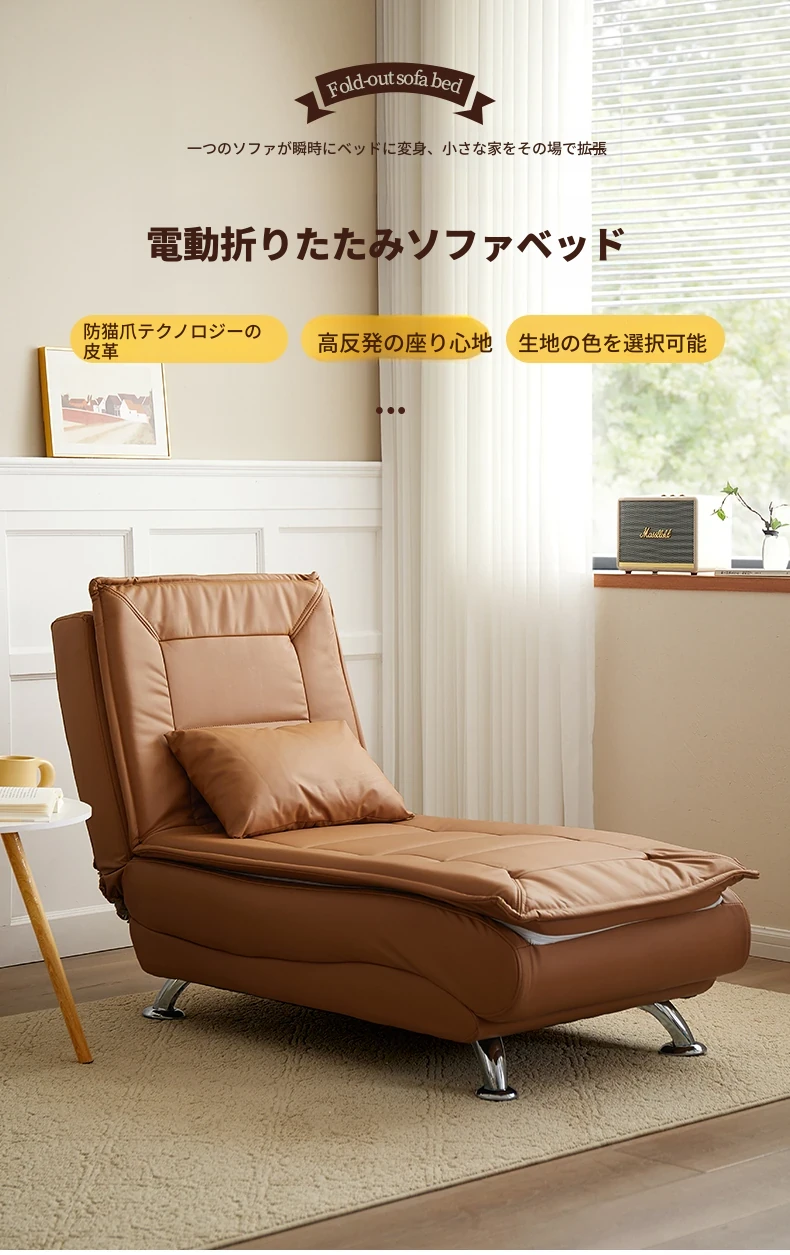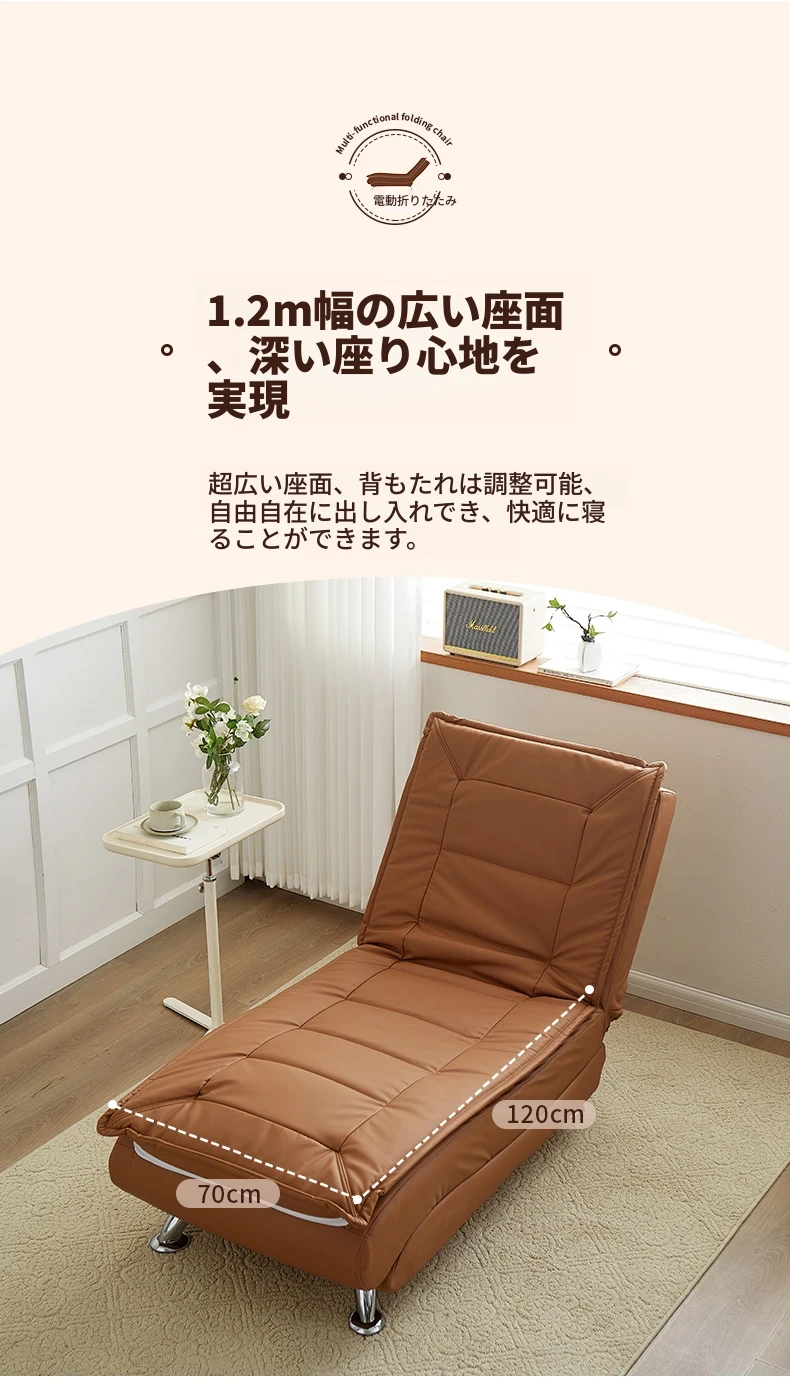 優雅な貴妃ソファ|リクライニング機能付き、寝心地抜群の一人用ソファベッド|小型お部屋に最適!電動折りたたみ式で、快適なリラックスタイムを実現!