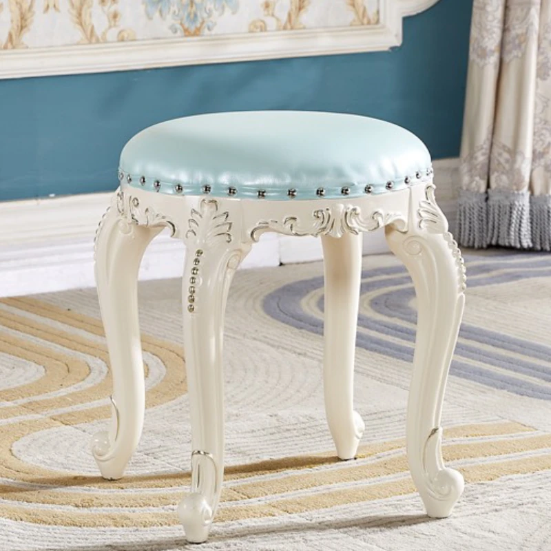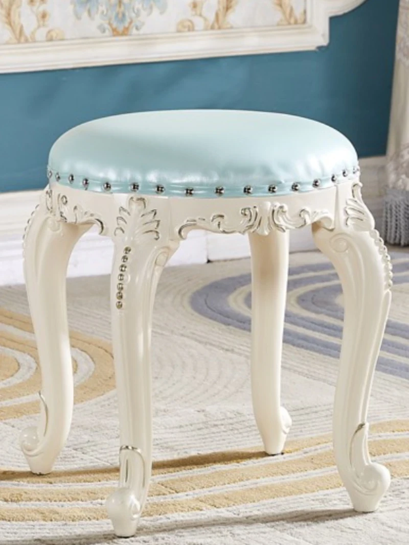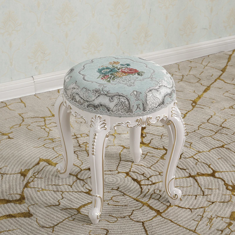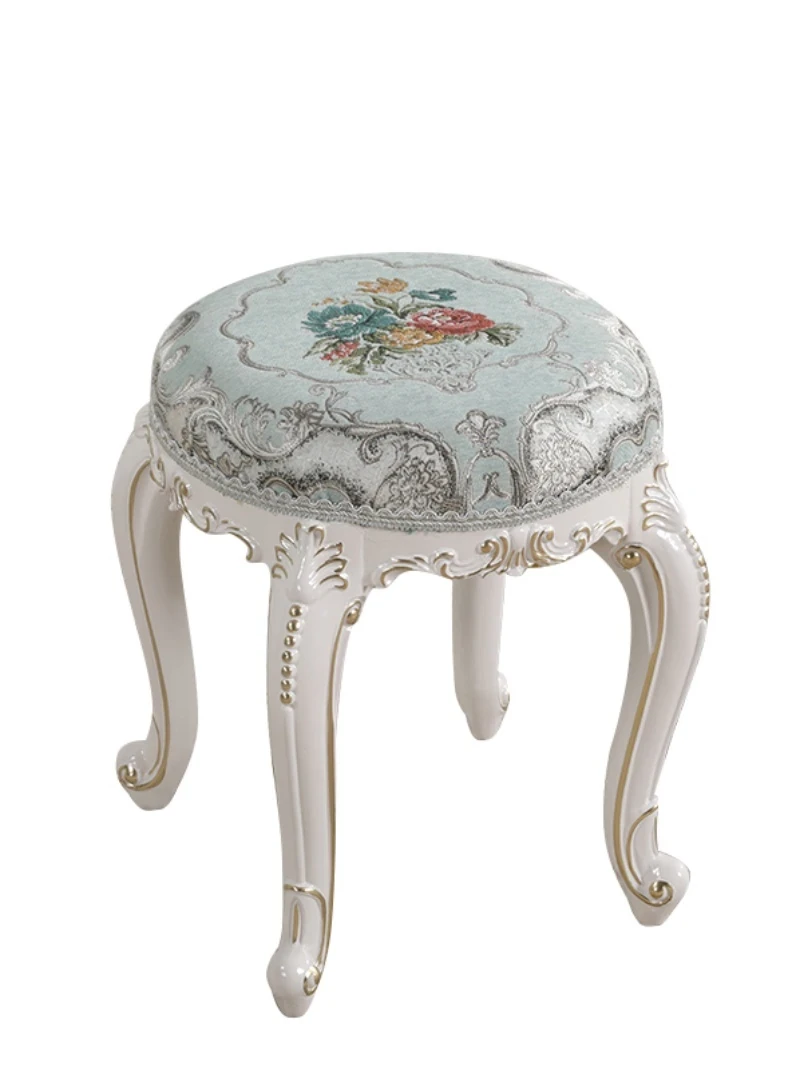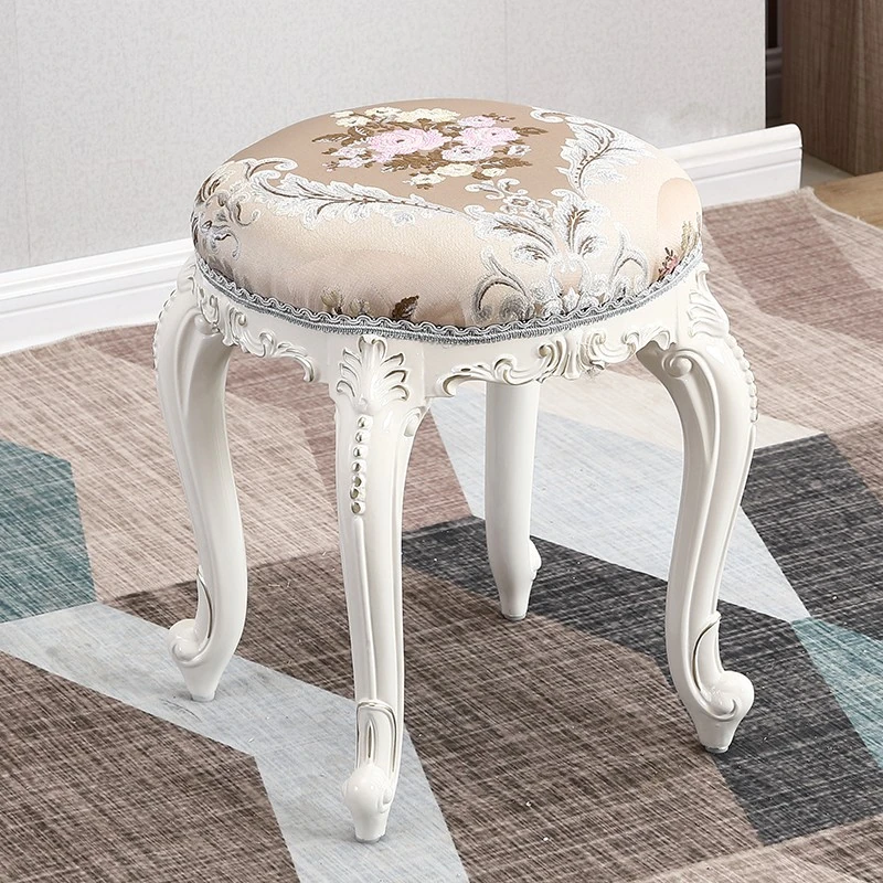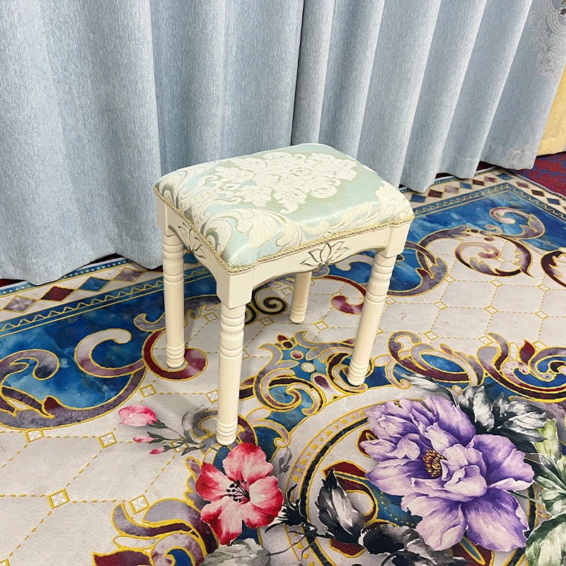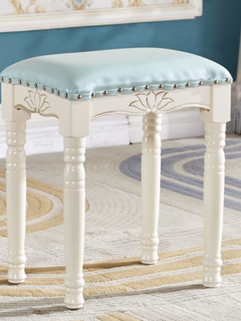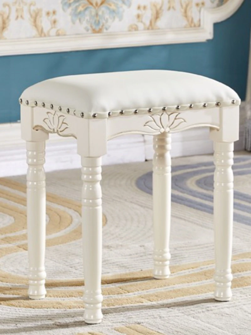 欧風シンプルモダン実木ドレッシングスツール|ラグジュアリーなデザインのダイニングテーブル&チェアセット|おしゃれで機能的な寝室用家具!