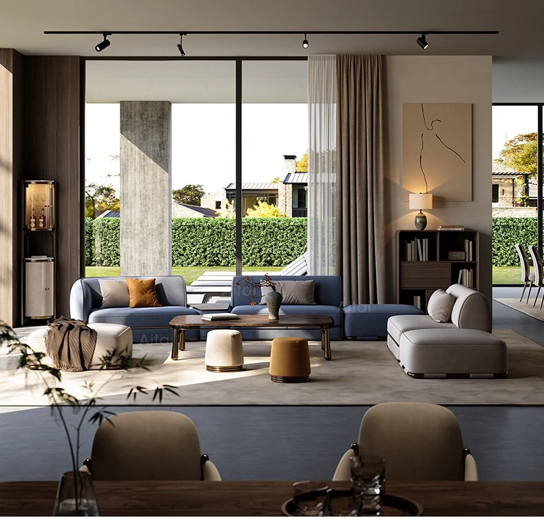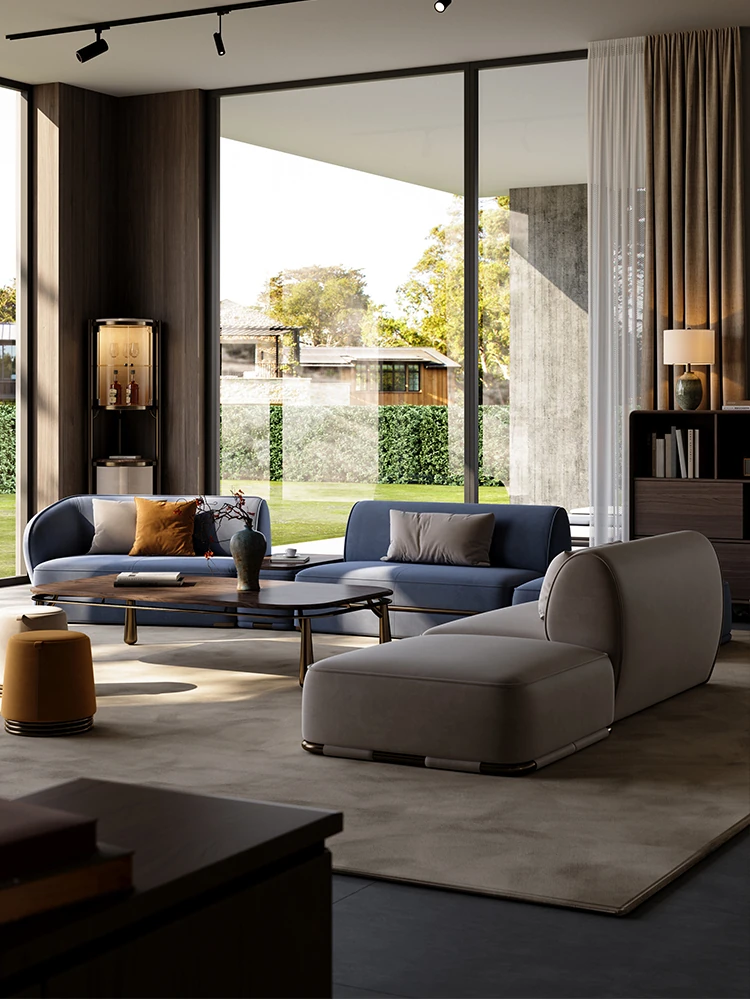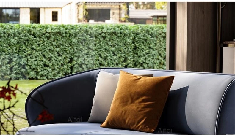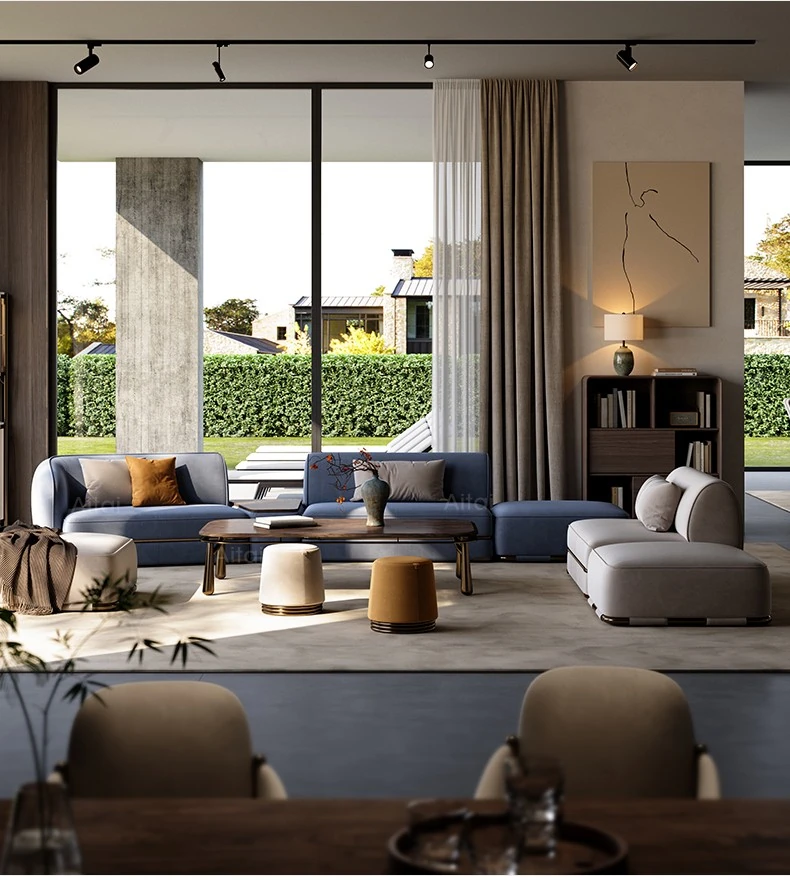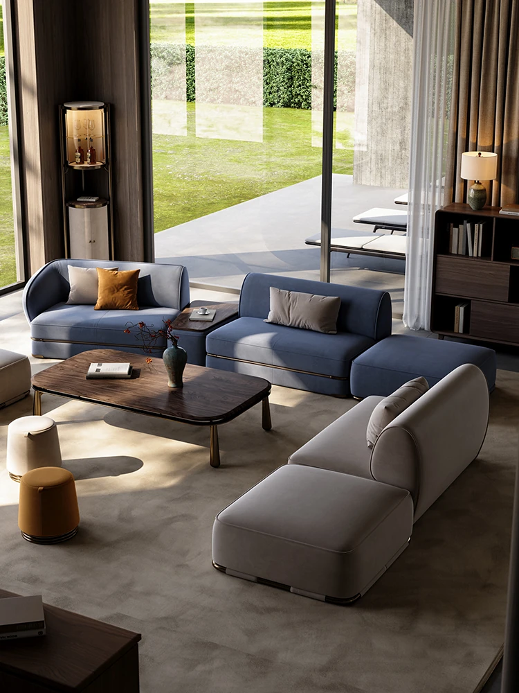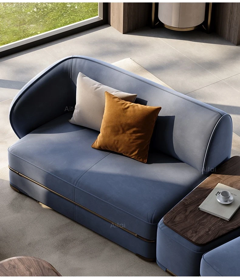 モダンでシンプルな豆腐ブロックソファ|新作ヴィラリビング用アーチ型モジュラーブダペスト本革ソファ|快適さとスタイルを両立したインテリアの必需品!