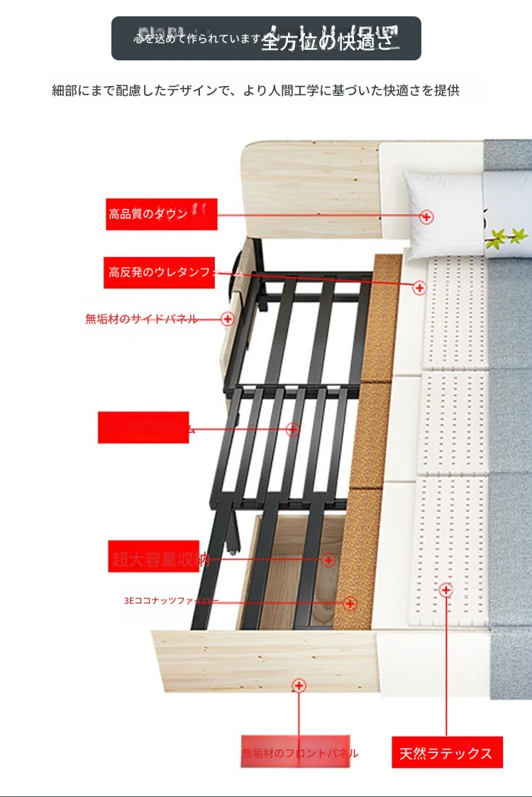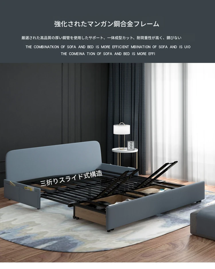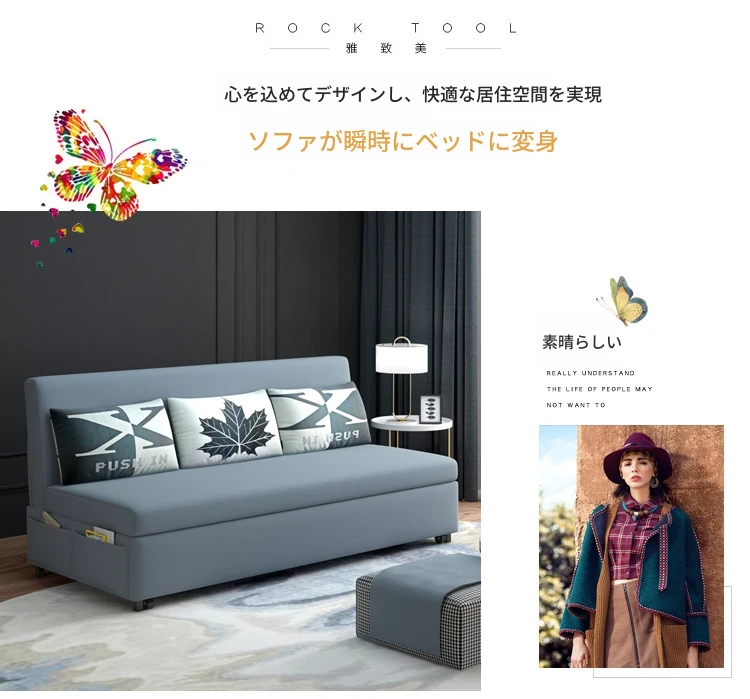アームレストなしの折りたたみソファベッド!座っても寝ても使える多機能デザイン。小さなバルコニーやリビングルームにぴったりなダブルベッドで、限られたスペースを有効活用!