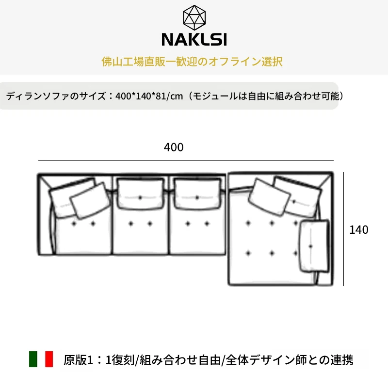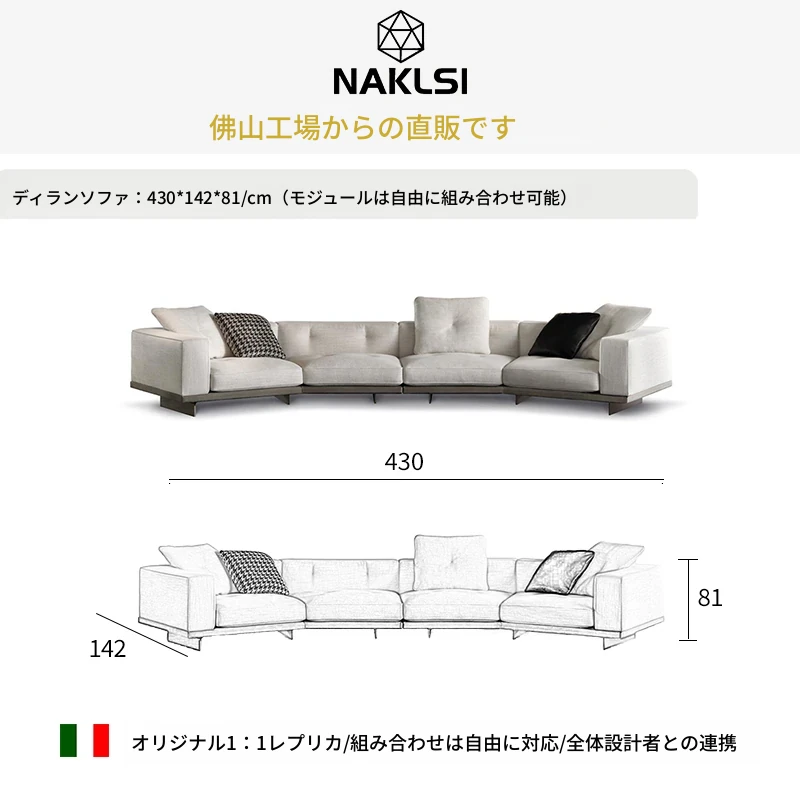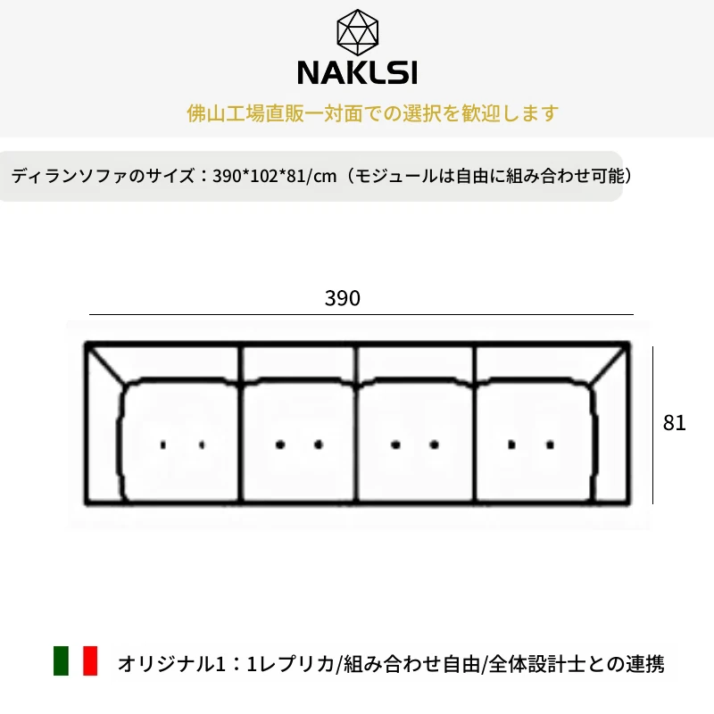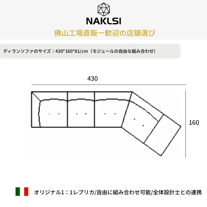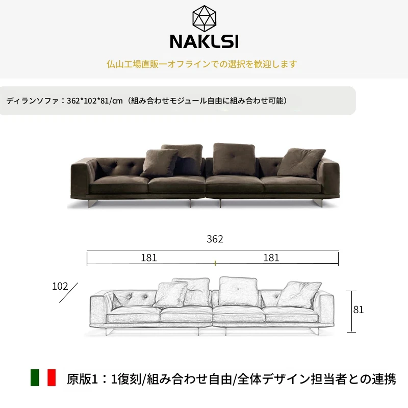 NAKLSI イタリア製ディランソファ 高級レプリカ インポート本革使用 大平面リビングに最適!高品質な第一層牛革で、贅沢な座り心地を体験してください。