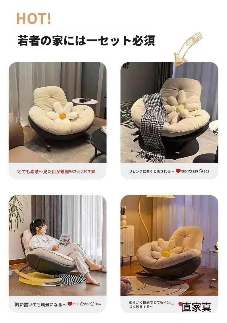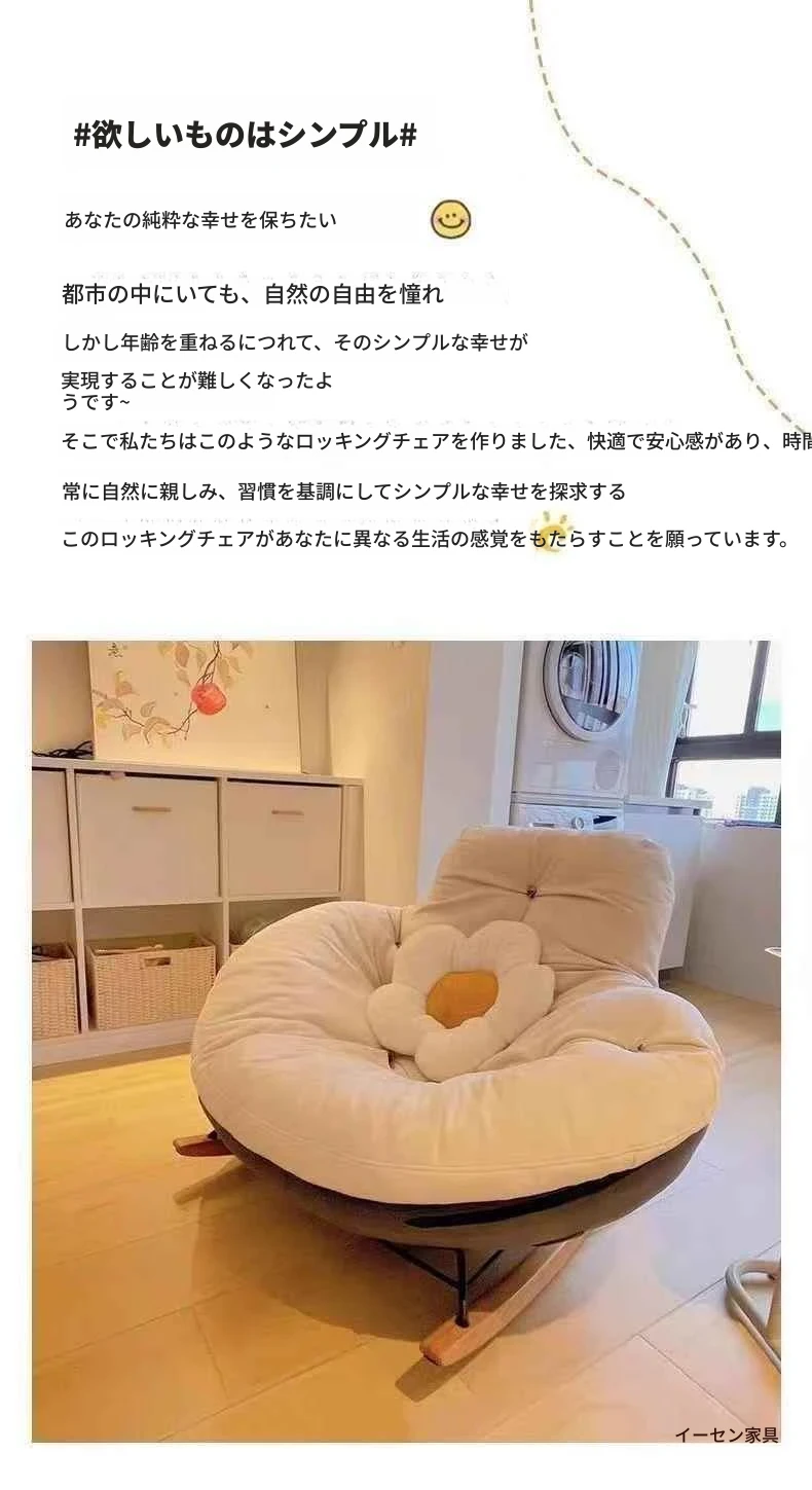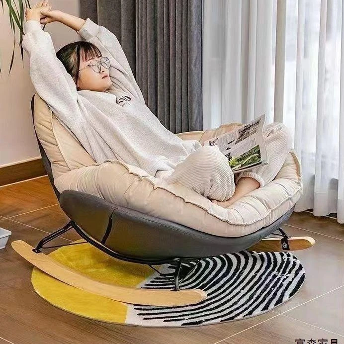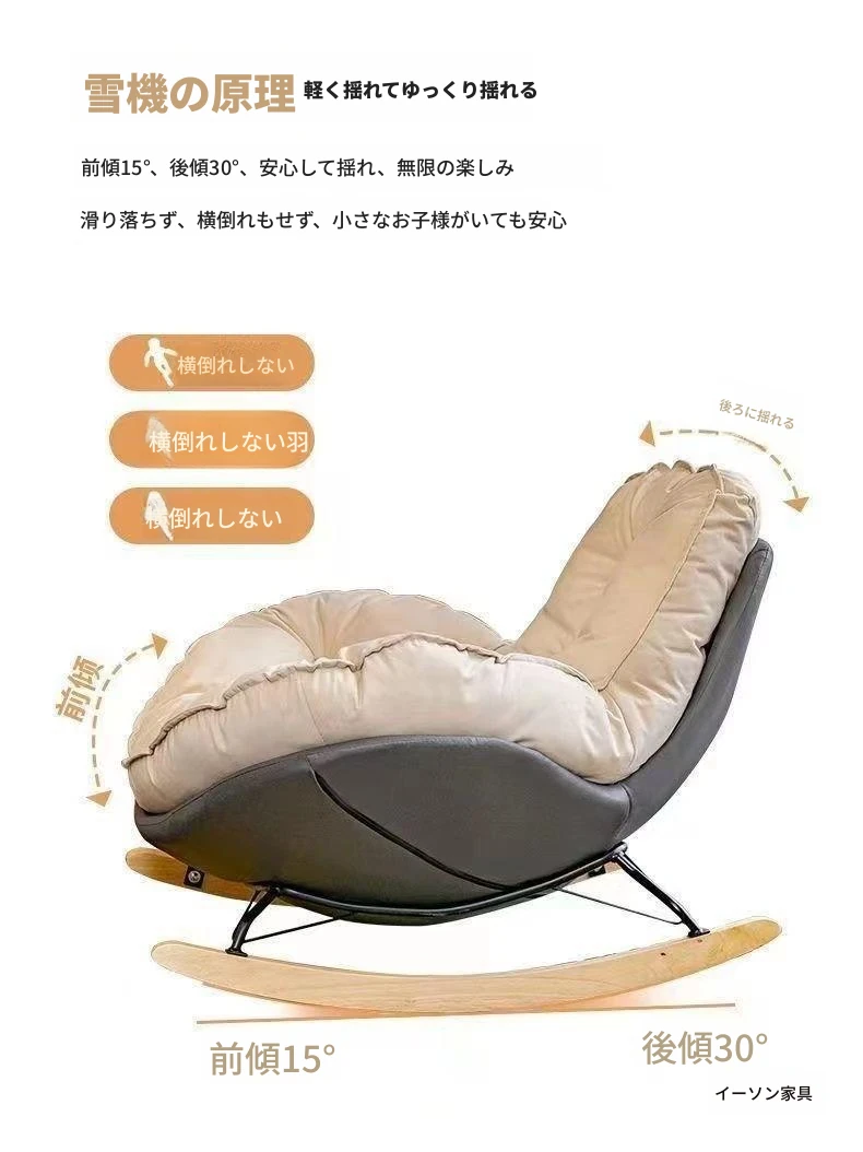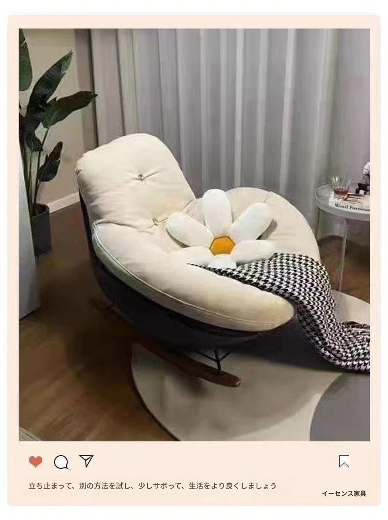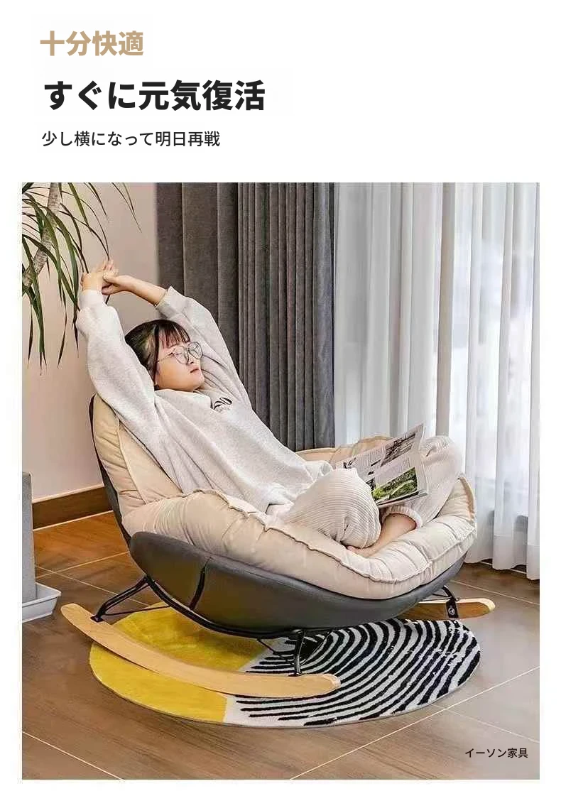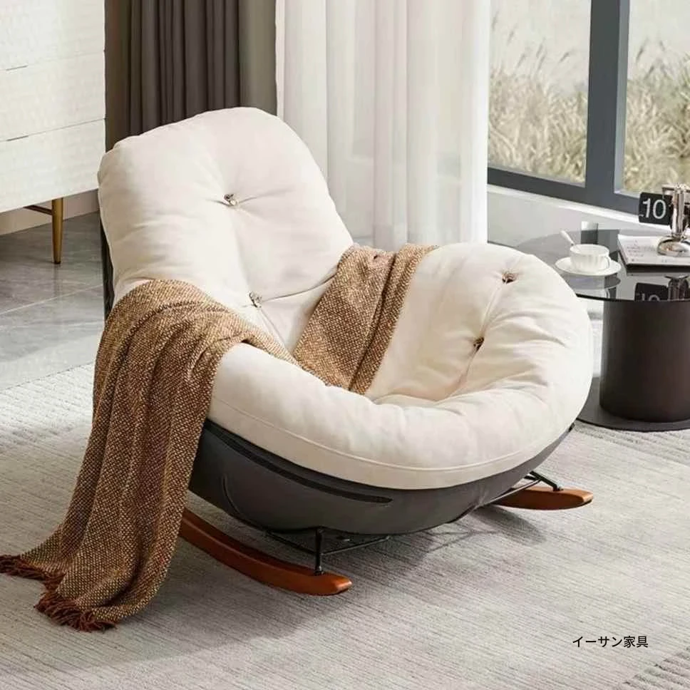 北欧スタイルのバルコニー・リビング・寝室に最適!贅沢なエッグシェルペンギーチェア、リクライニング機能付きの一人掛けロッキングチェア。くつろぎの時間を演出するラグジュアリーなリラックスソファ!