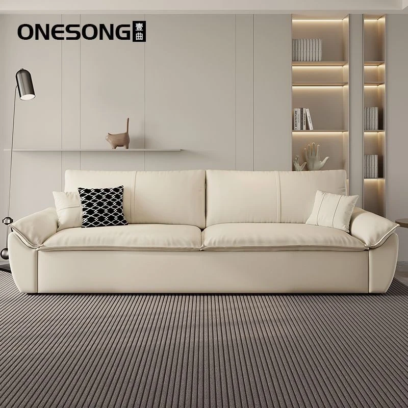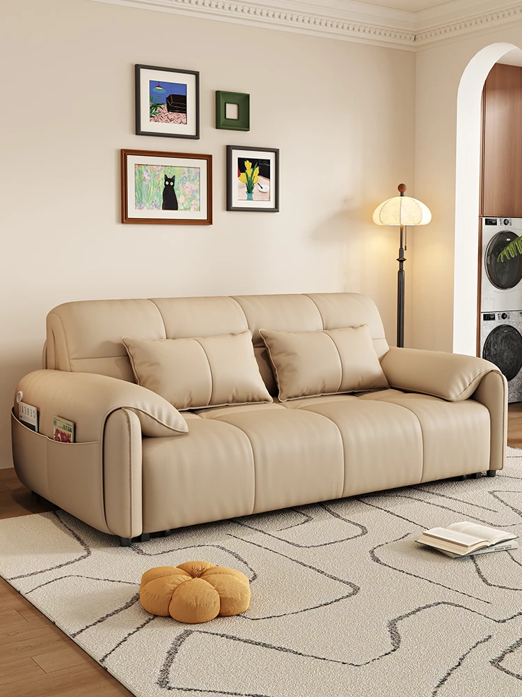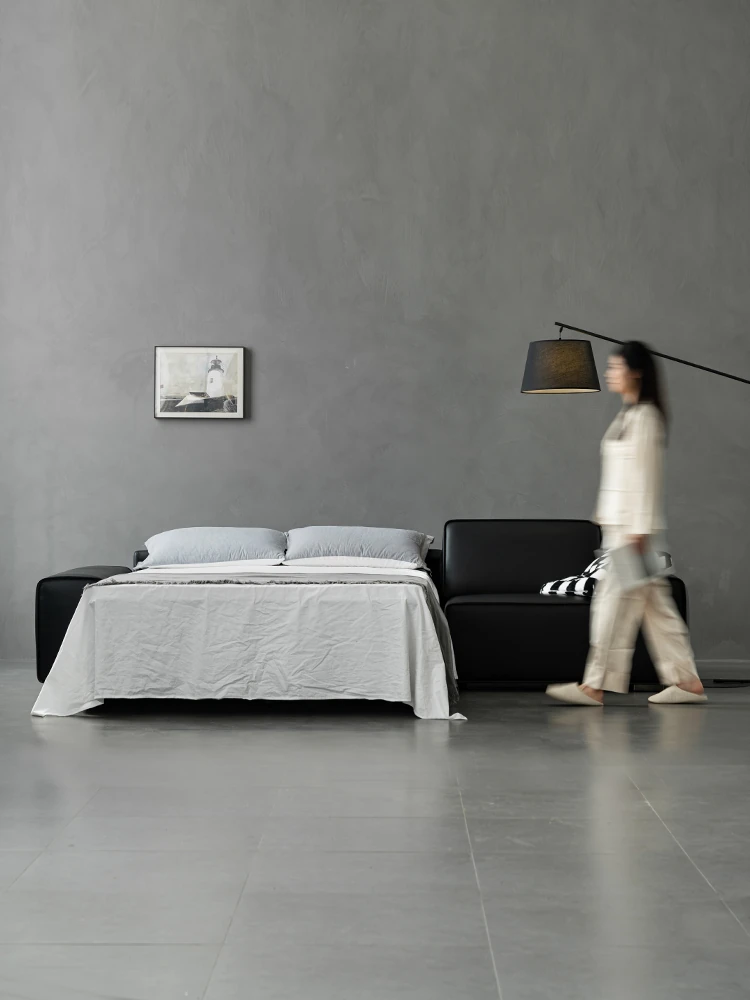 Dream イタリアンミニマリスト本革ブラック牛革ソファベッド 北欧風トレンドの小型リビング用豆腐ブロックソファベッド ー おしゃれでコンパクト、快適な空間を演出します!