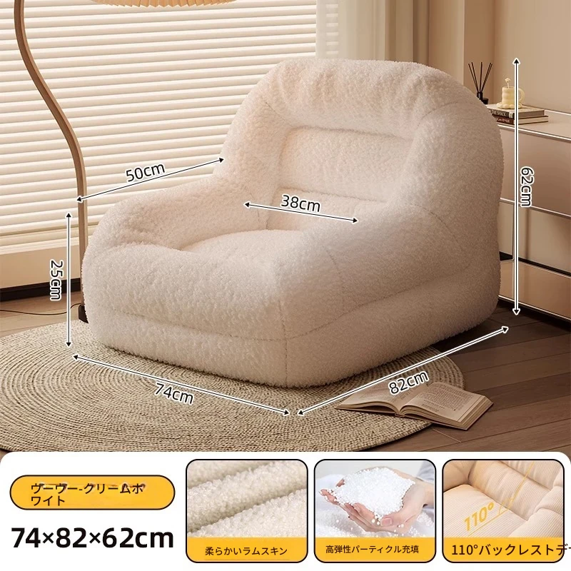 学生寮にぴったり!リラックスできる懶人ソファタタミ、背もたれ付きのコンパクトな一人用リクライニングチェア。足がないので省スペース、快適な座り心地で勉強やリラックスタイムに最適です!