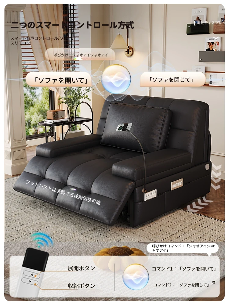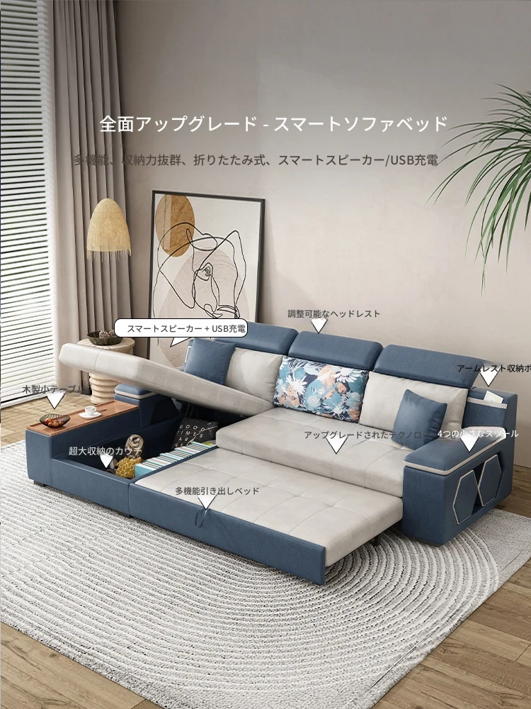 2025年新登場!多機能スマート電動ソファベッド - コンパクトなリビングや寝室に最適!折りたたみ式で、伸縮可能な収納スペース付き。おしゃれで便利な生活空間を演出します!