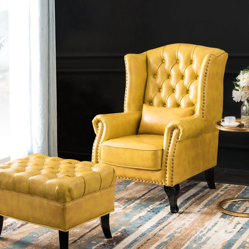 アメリカンスタイルの一人掛けソファ、本革製のトラチェア!輸入オイルワックスレザー使用、リラックスできるハイバックデザイン。ラグジュアリーなトラのスツールとフットレスト付きで、快適なひとときをお楽しみください!