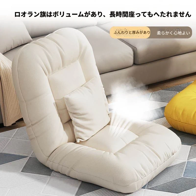 かわいいデザインのリラックスソファ!畳の上でも使える、背もたれ付きの一人用窓辺クッションソファ。折りたたみ式で、家庭用に最適。おしゃれな寝室にぴったりのアイテムです!