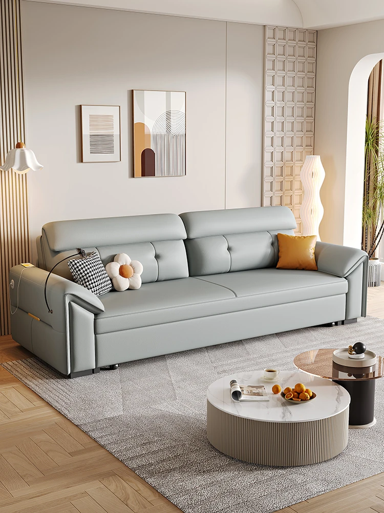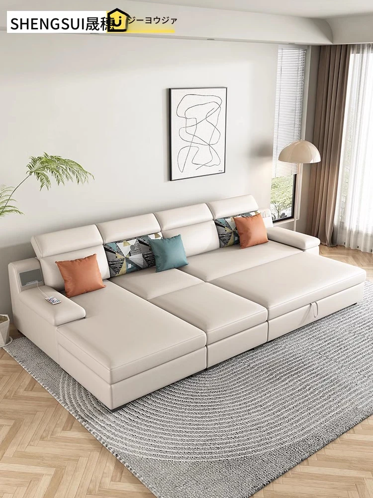 新型スマート電動レザーソファベッド 折りたたみ式・伸縮可能 2WAYデザイン 小型住宅に最適な多機能リビング・書斎用家具