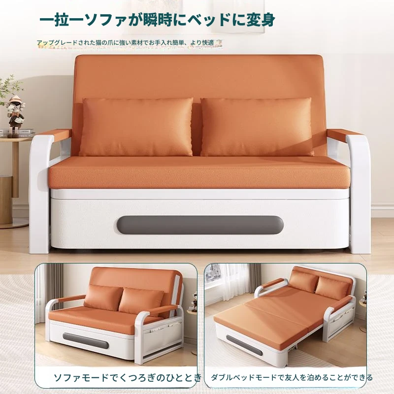 2025年新作!多機能ソファベッド - スペースを有効活用!小型住宅に最適な収納付き、ダブルサイズで折りたたみ可能。リビングや寝室にぴったりな伸縮式デザイン。快適さと実用性を兼ね備えた一体型!