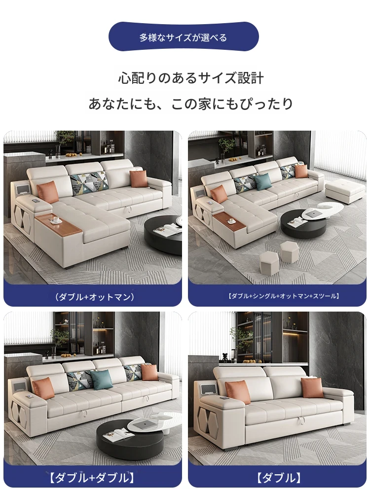 2025年最新モデル!高品質な本革電動ソファベッド、スマート自動折りたたみ機能付き。省スペースの小型リビングに最適!快適さとスタイルを両立した一体型デザイン。