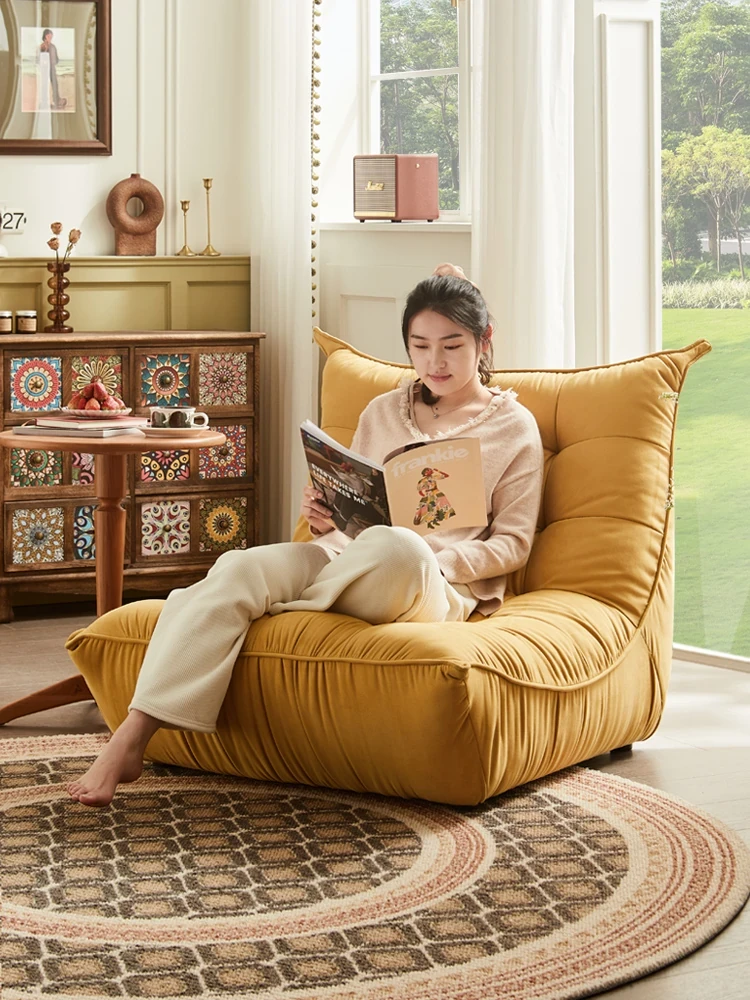 リラックスできるカウチソファ!おしゃれなラウンジチェア、寝室やバルコニーに最適。寝転んだり、くつろいだりできるマルチな一人用ソファ、毛虫デザインで快適さ抜群!