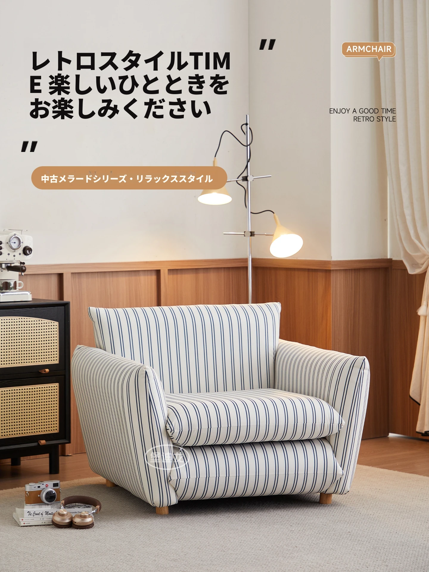 フレンチレトロストライプの一人掛けソファ|省スペースでおしゃれなリビングや寝室に最適!リラックスできるくつろぎタイムを演出する、快適なラウンジソファ。