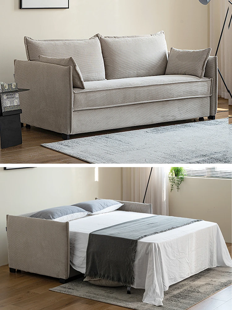 高級コーデュロイ生地の折りたたみソファベッド - 小型リビングに最適な多機能デザイン!トレンド感満載で、居心地の良い空間を演出します。